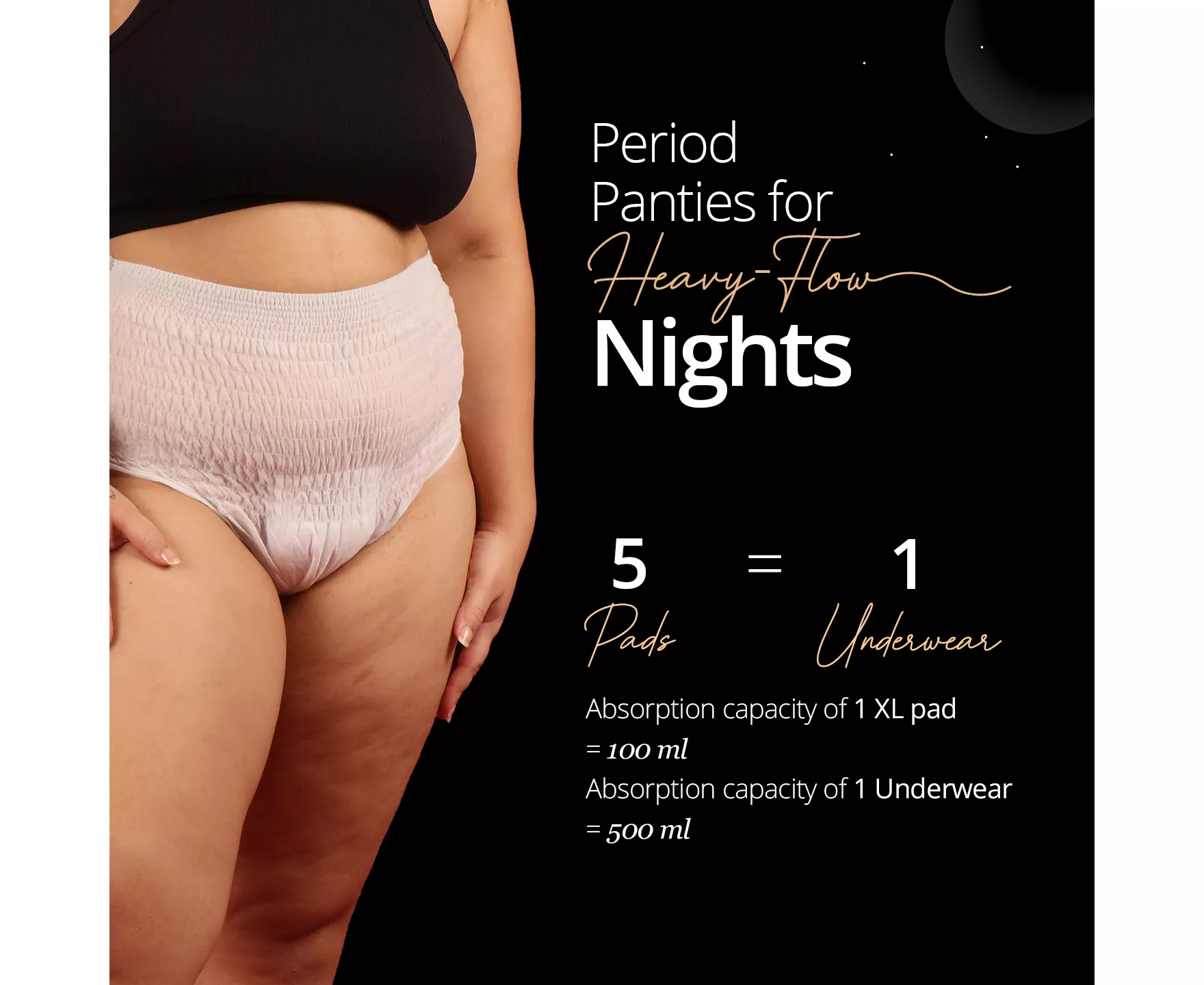 | Carmesi Disposable Period Panties (L-XL) | 360° Protection for Super Heavy Flow | No Leakage, No Rashes, No Discomfort | All-Night Protection | Ultra-Absorbent Core | 4 Pcs |