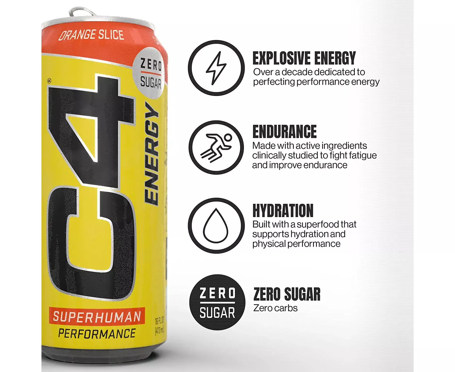 Explosive Energy from 200 mg of caffeine infused with clinically studied ingredients for endurance and hydration. All with, zero sugar, carbs, or calories, and no artificial colors or flavors.