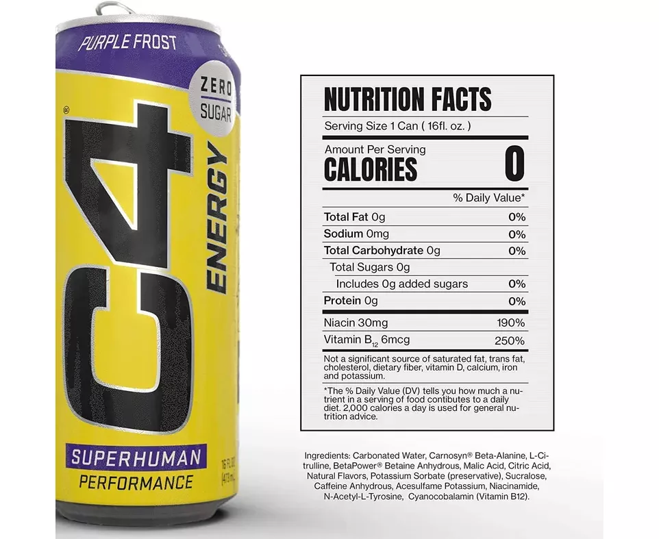Pre-Mix Pre-Workout for Energy, Focus, and Ultimate Convenience! Supports Energy Levels During Workouts! Introducing C4 Original Carbonated, our newest addition to the C4 family. Canned, carbonated, and charged with the explosive energy and legendary performance of C4 Original, C4 Original Carbonated is the perfect fuel for your fitness journey. C4 Original Carbonated tastes amazing and contains zero sugar, zero calories, and zero total carbs.