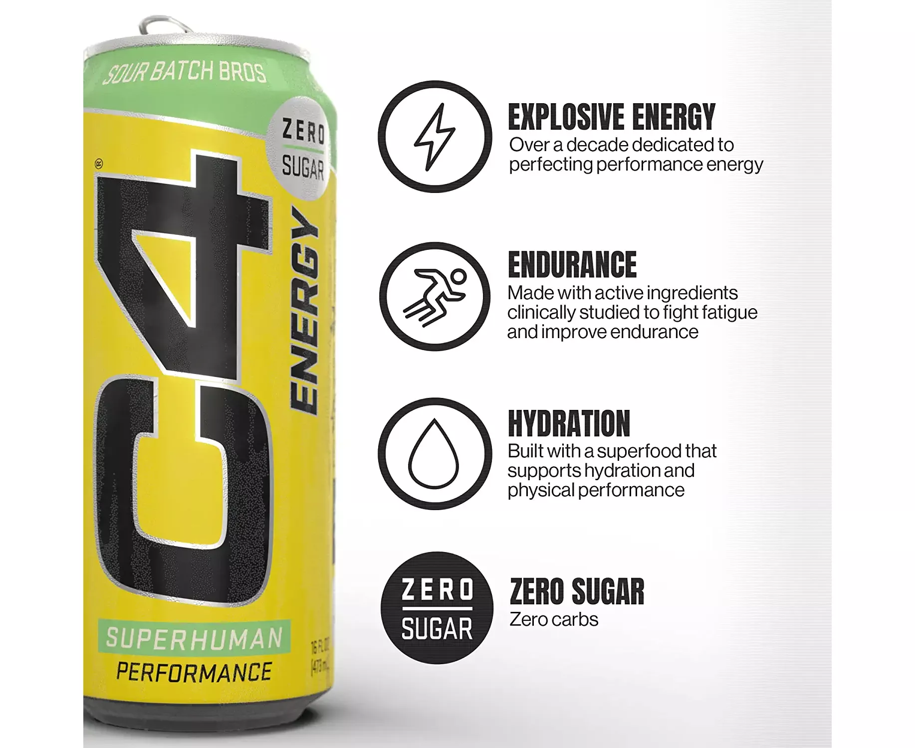 The delicious sugar-free energy drink, C4® Energy, is powered by CarnoSyn® Beta-Alanine, BetaPower®, and other key ingredients that support explosive energy, muscular endurance, mental alertness, increased hydration, and improved physical performance for your active lifestyle.
