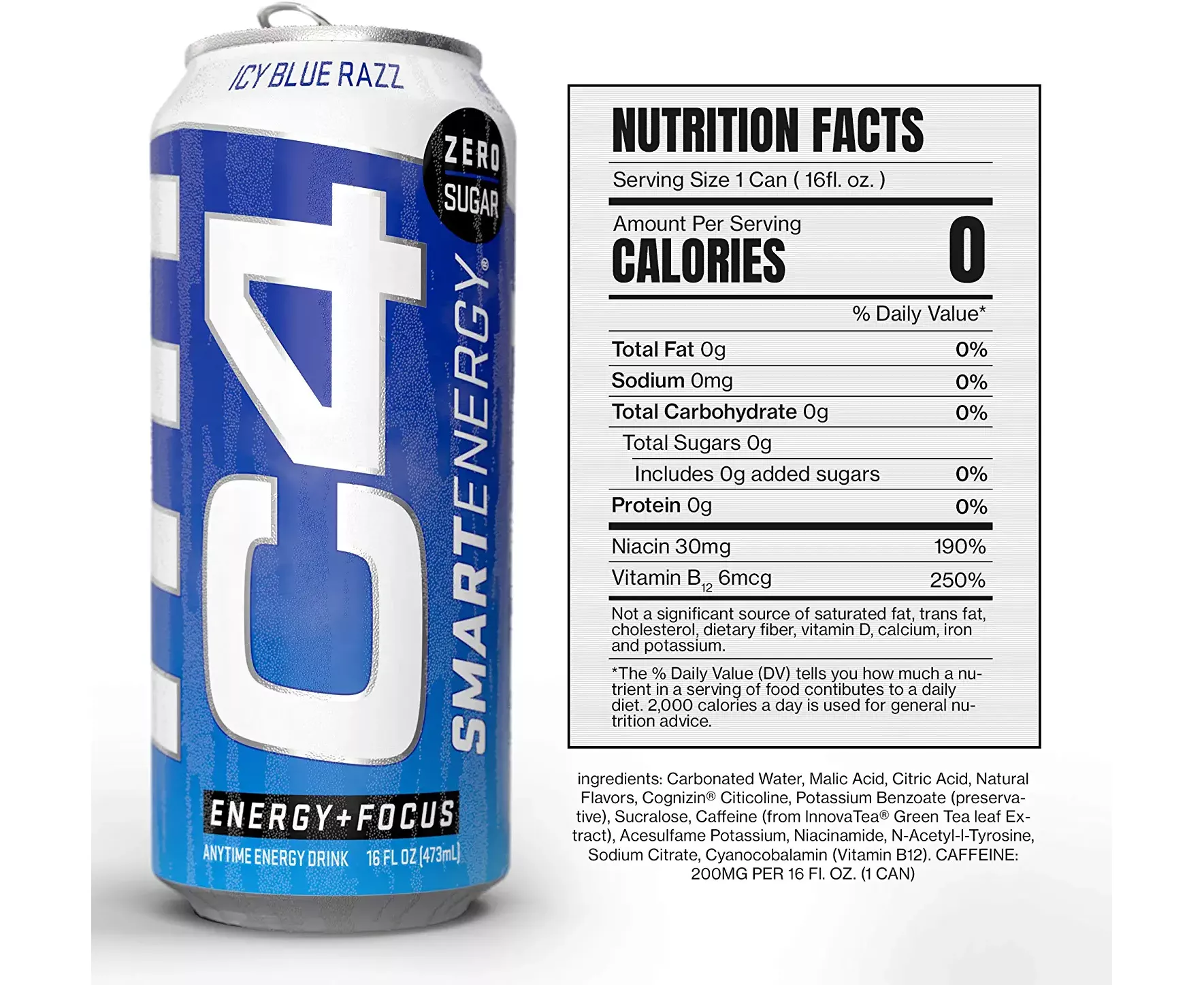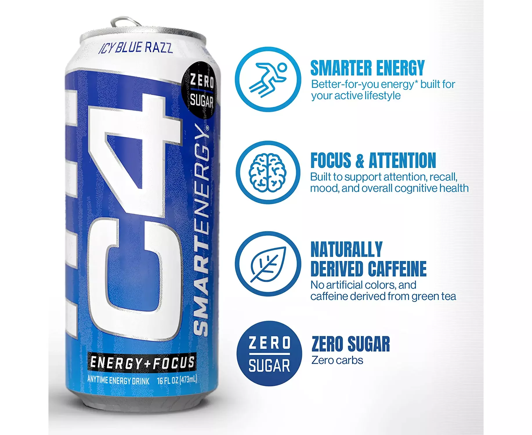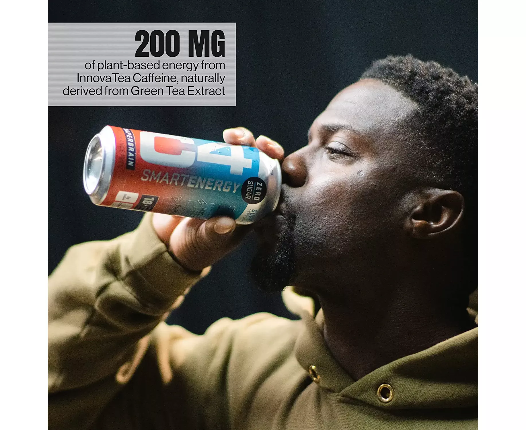 The delicious sugar-free energy drink, C4 smart energy, is powered by InnovaTea naturally derived caffeine (from green tea) and brain-boosting Cognizin Citicoline to deliver energy, focus, and mental performance to help you conquer any task-from work to play, gaming to studying, partying to planning.