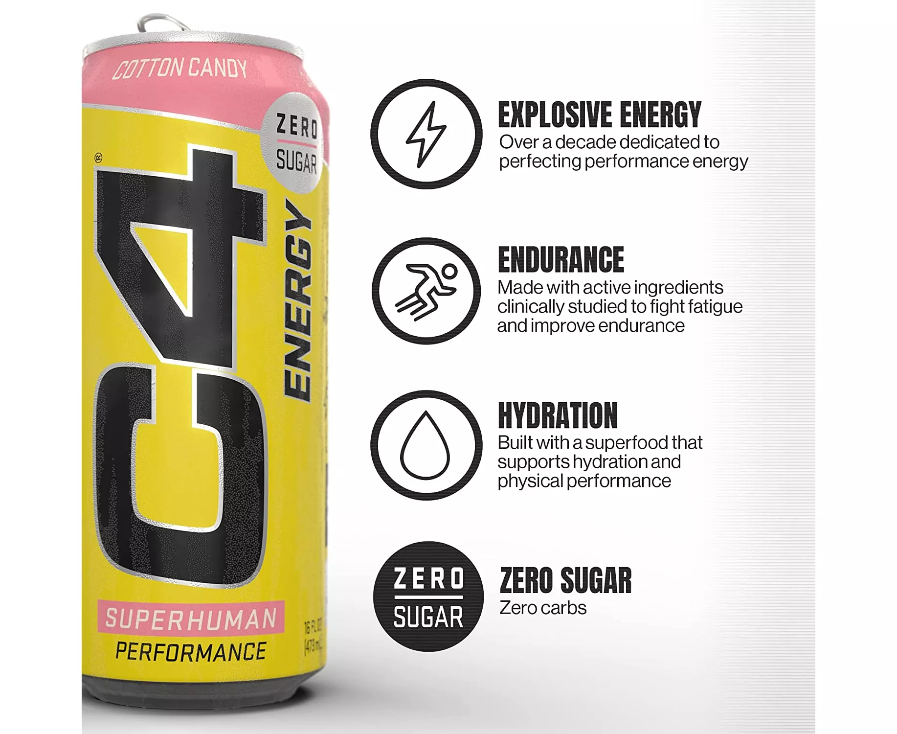 The delicious sugar-free energy drink, C4® Energy, is powered by CarnoSyn® Beta-Alanine, BetaPower®, and other key ingredients that support explosive energy, muscular endurance, mental alertness, increased hydration, and improved physical performance for your active lifestyle.