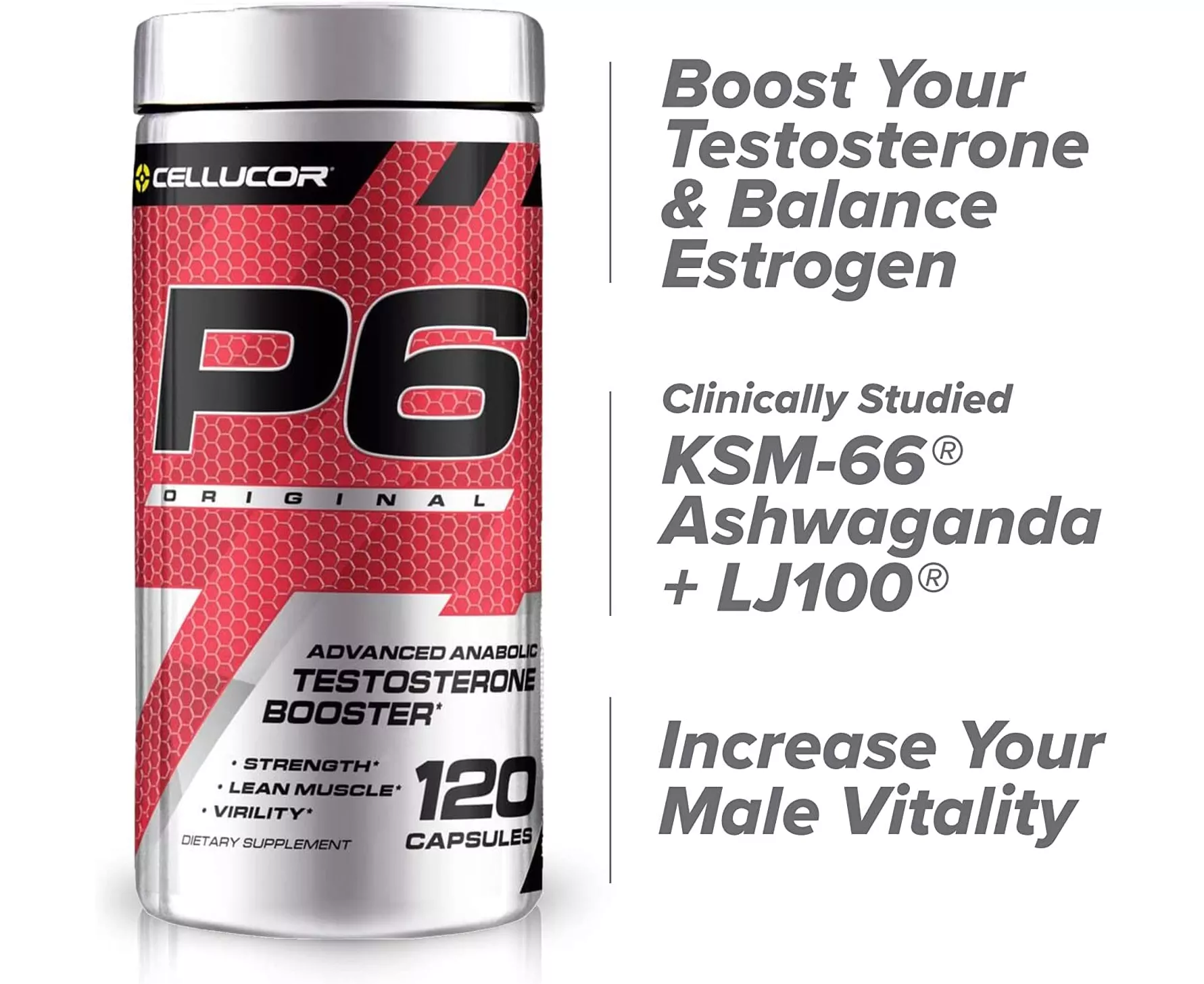 P6 Original is formulated to support strength, vitality, and natural testosterone levels. Support natural testosterone production, inhibit estrogen formation, and unlock your best results. The P6 product family has set the standard in the natural testosterone support category for nearly a decade.