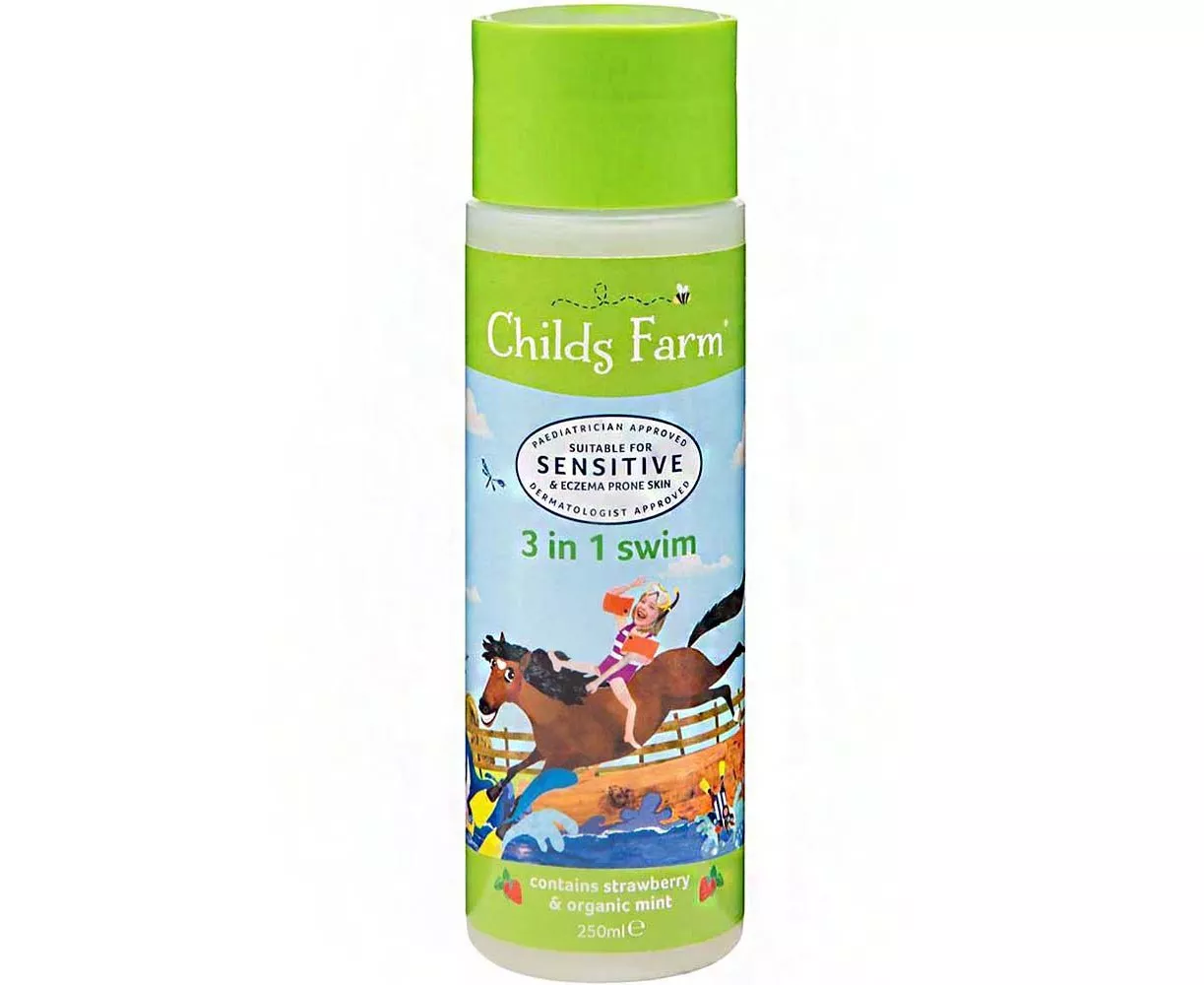 Award-winning 3 in 1 swim is a shampoo, conditioner and body wash in one, with fragrant strawberry and organic mint. Use after swimming to wash away chlorine and leave skin & hair clean and shiny. Suitable for newborns and upwards, dermatologist approved for sensitive and eczema prone skin. Always patch test. We recommend that you carry out a patch test 24 hours before using any product for the first time