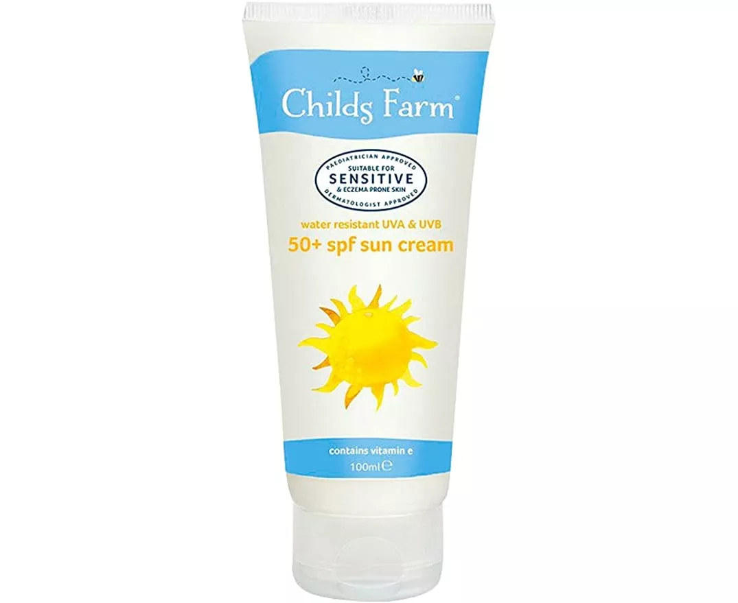 Childs Farm new formulation 50+ SPF sun cream for very high protection, is water resistant and protects young and sensitive skin from UVA and UVB rays, whilst keeping skin moisturised and hydrated so you can relax while your children enjoy the sun safely.