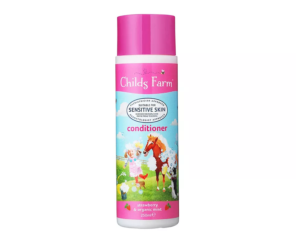 Childs Farm detangling conditioner has a delicious strawberry aroma and organic mint oil to aid easy combing of tangles and static free hair. No more unruly hair!