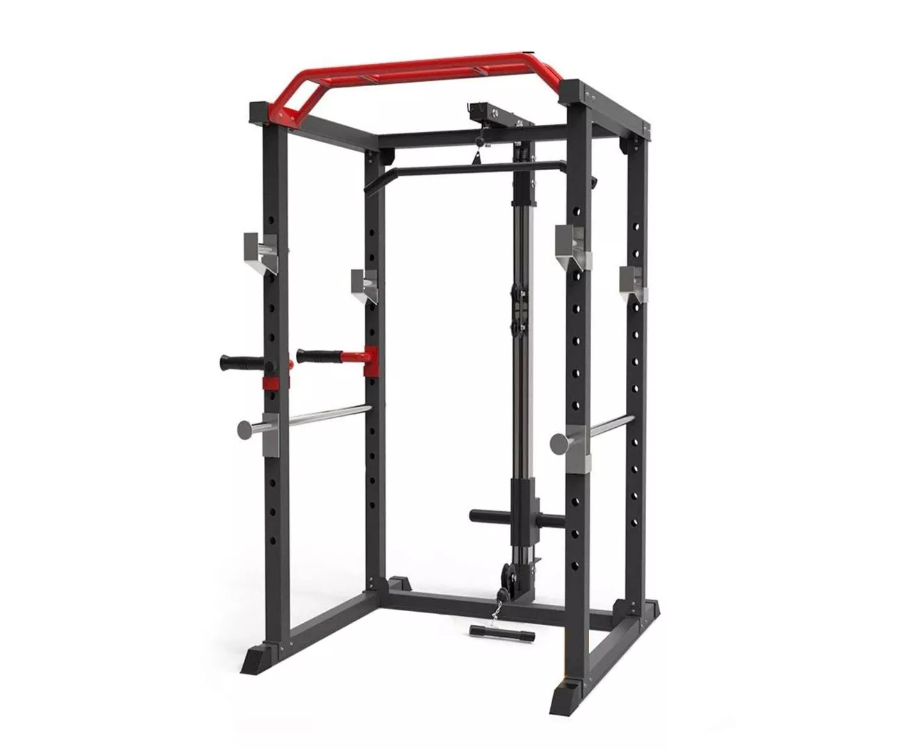 There is a set of adjustable pulleys for safe and effective exercises, upgraded sleeves, equipped with a barbell protection bar, and solid steel supports that can be adjusted freely and the maximum cables load is 100 Kg