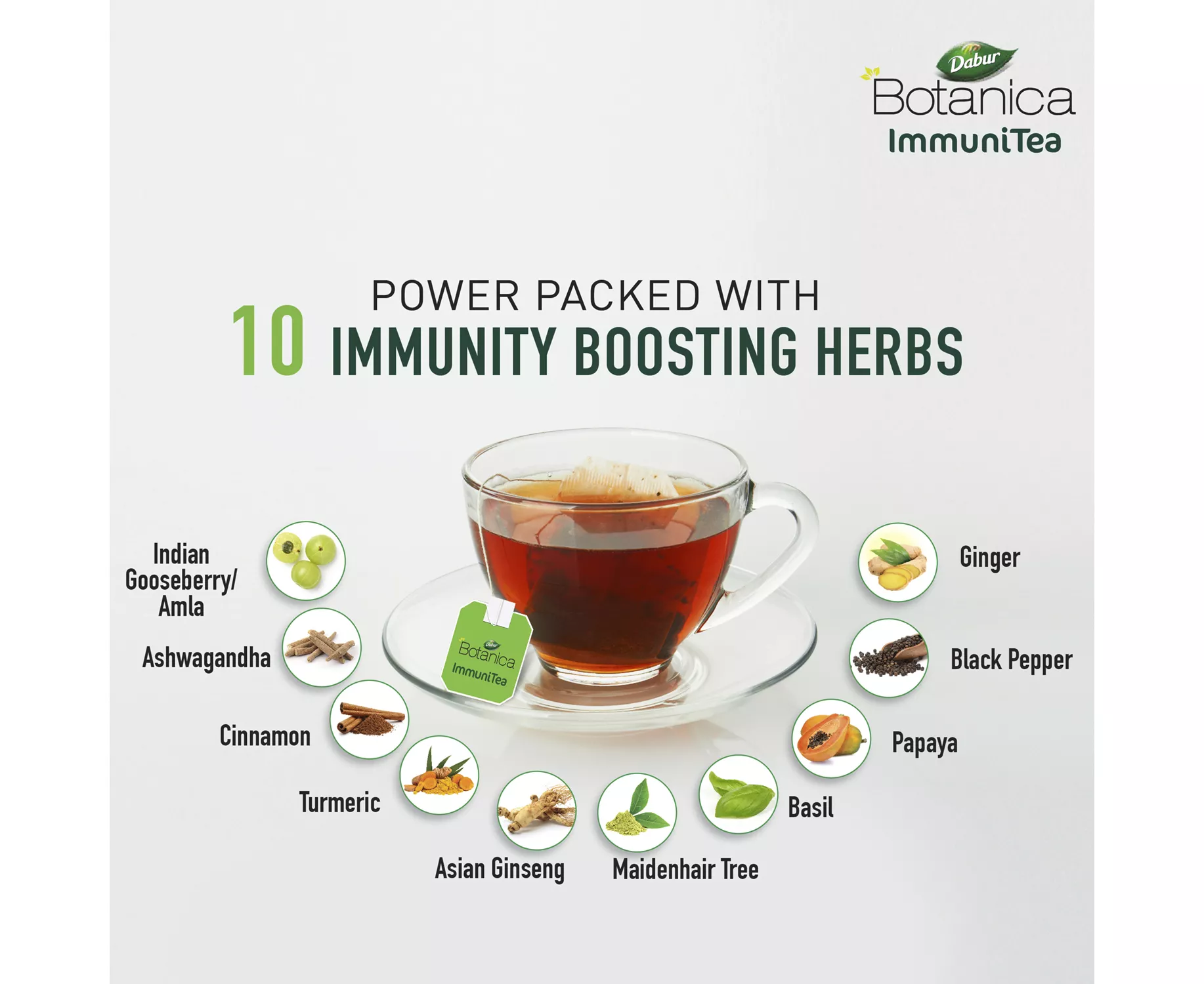 Your daily dose of Immunity! Dabur Botanica ImmuniTea is power-packed with 12 ingredients to Boost Immunity and Day-to-day Wellness! Dabur ImmuniTea is a very convenient solution to keep your Immune System strengthened.