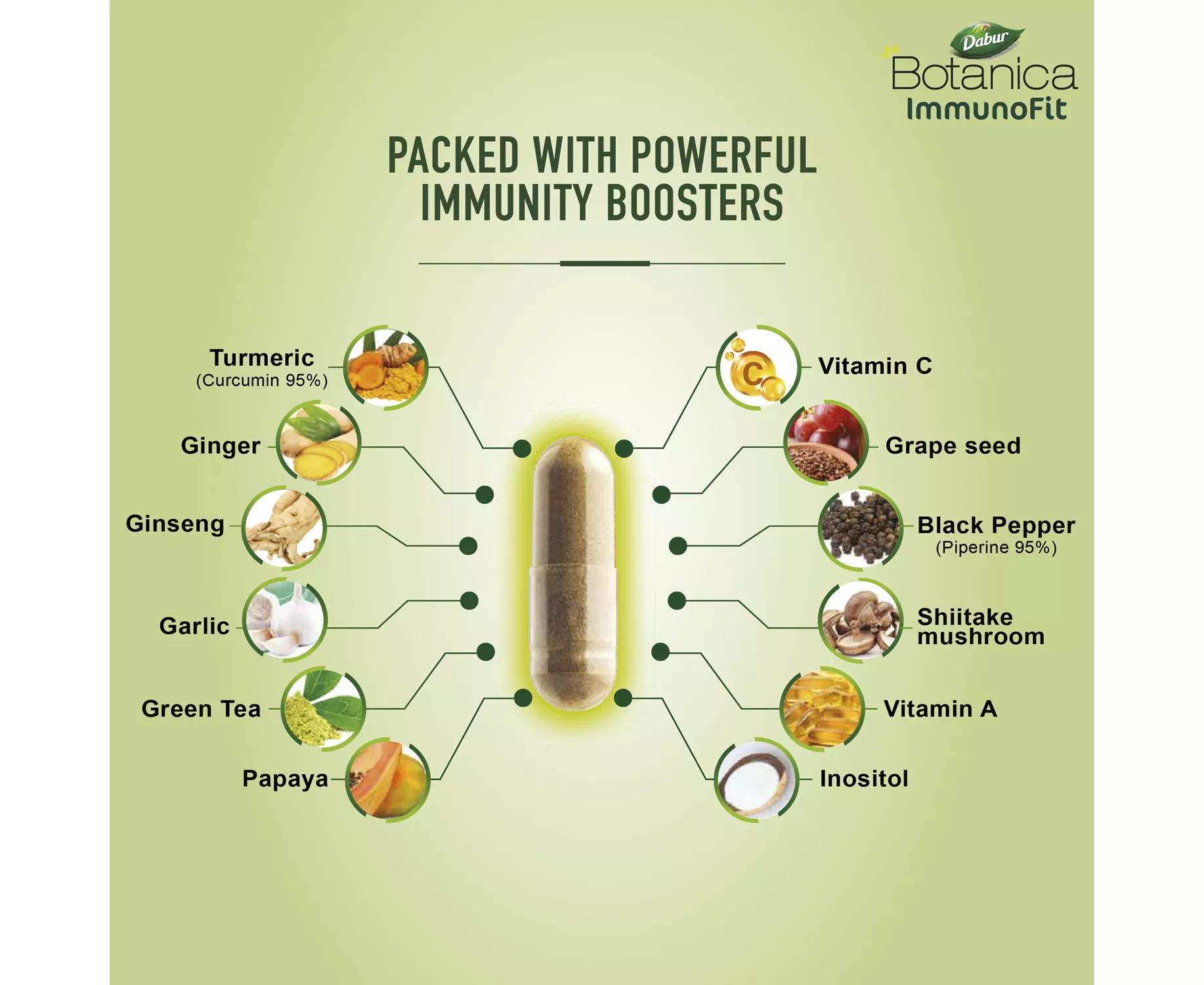 Dabur Botanica ImmunoFit Veg. Capsules | 12 Ingredients | Boosts Immunity | Turmeric | Vitamin C | Ginger | Ginseng | Herbal | Antioxidant | 60s