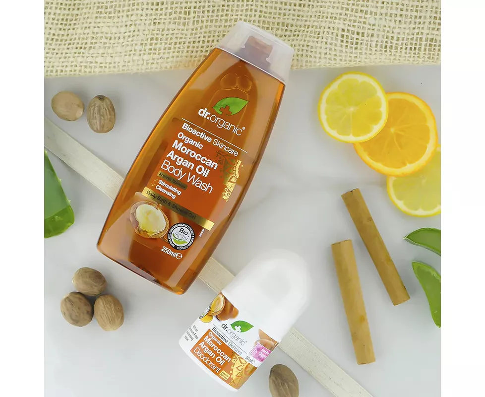 Start your day with a stimulating shower with dr.organic Moroccan Argan Oil Body Wash that gently cleanses your body. It is loaded with organic Moroccan argan oil that is known to possess antioxidant properties and essential fatty acids. It also has other bioactive and organic extracts that leave your skin feeling restored.
