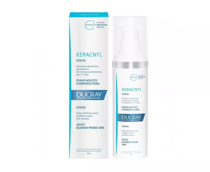 Ducray Keracnyl Serum is a serum especially designed to prevent and correct the appearance of imperfections such as brown spots in acne-prone skin. This dermatologically tested formula has been shown to improve skin texture by 20%, reduce the appearance of imperfections and blemishes by 52%, and minimize redness by 36%, according to clinical trials. After use, the skin is left moisturized and mattified, for a pure and healthy appearance.