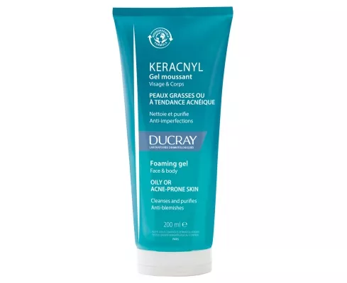 Ducray Keracnyl Foaming Gel 200ml is a face and body foaming gel intended to oily skins or with acne tendency. Its formula enriched in Myrtacine gently cleanses without drying the skin and promotes the elimination of pimples.