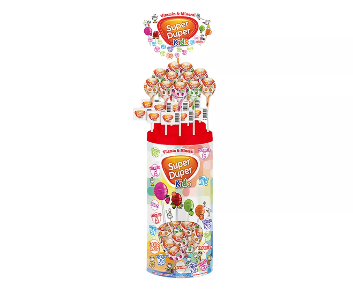 1 Super Duper Kids Lollipop meets more than 25% of a child’s daily vitamin needs.