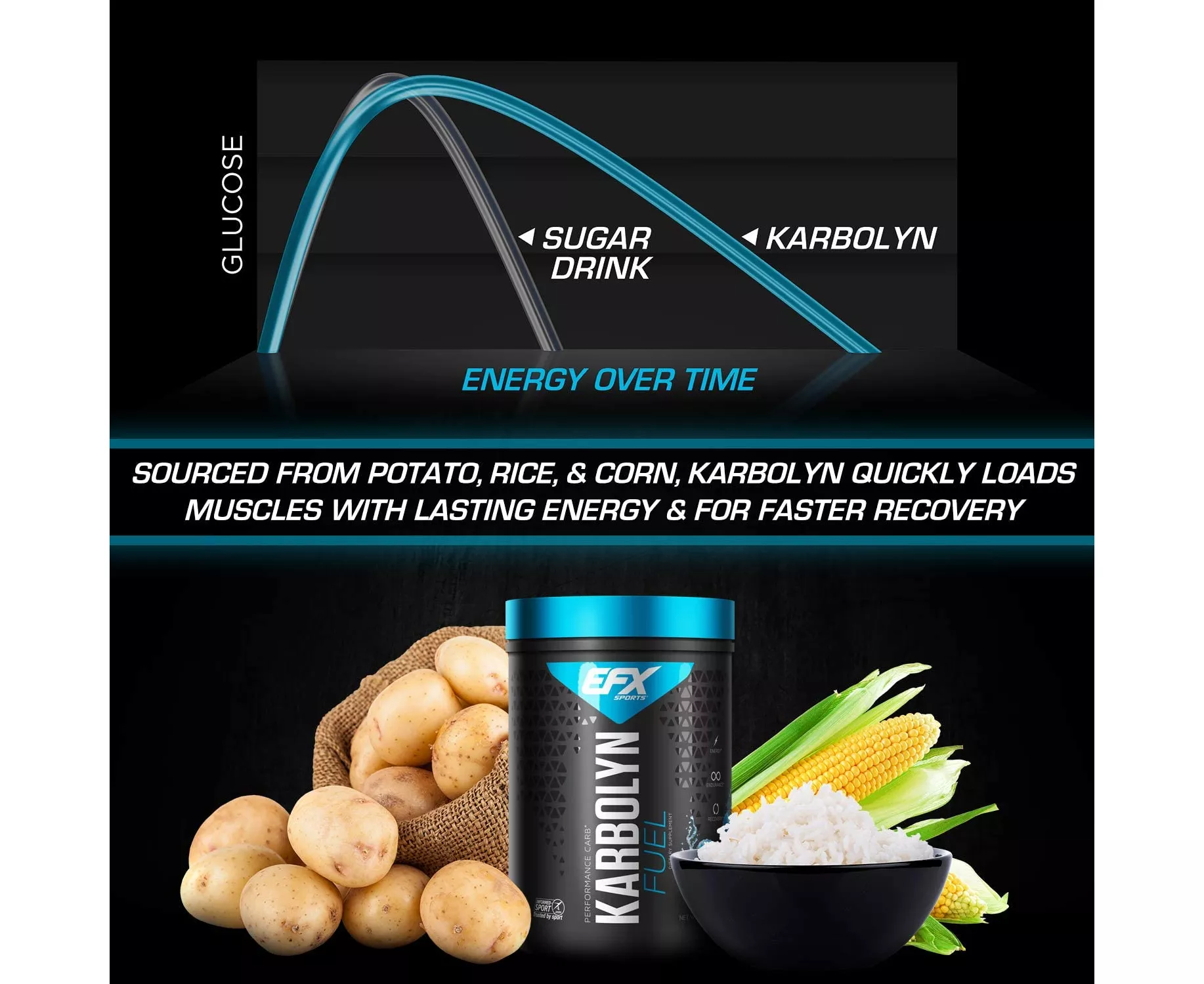 Fast-Absorbing Carb With Complex Carb Sustainability. Glycogen Loading Fuel Source. Sugar-Free, Gluten-Free, Stimulant-Free, Vegan-Friendly. Invented By EFX Sports Scientist Dr. Jeff Golini. Informed Sport Certified, Banned-Substance Free. Manufactured By Us – We Control ALL Production