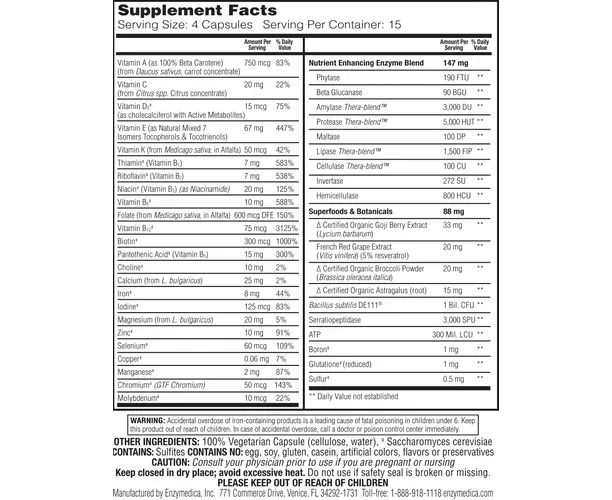 Give yourself more than vitamins & feel your best with supported nutrition! Women need more than vitamins to get full benefits. Enzyme Nutrition for Women packs a whole host of minerals, superfoods and guaranteed potency probiotics and enzymes that are made from 100% whole food and specially formulated to give women exactly what they need for increased energy and bone, breast, hormone, hair, skin and nail health. When you get all the nutrients you need, your whole body feels it.