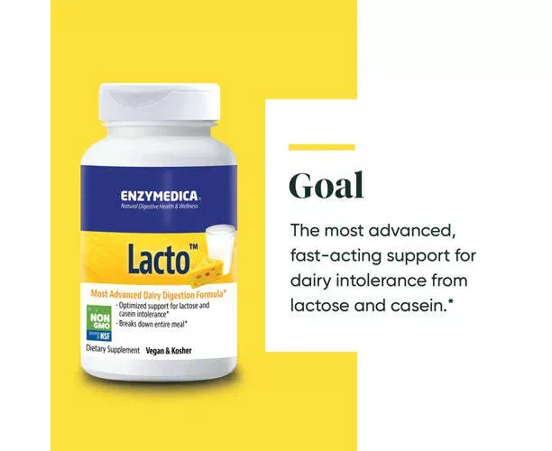 Our max strength formula is packed with the enzymes lactase and protease to help break down problem-causing lactose and casein, providing the ultimate support for dairy intolerances. Powered by Thera-blend, the enzymes in Lacto are active throughout the entire digestive tract, maximizing your health benefits. With the right help, you can go back to enjoying the dairy products you love.