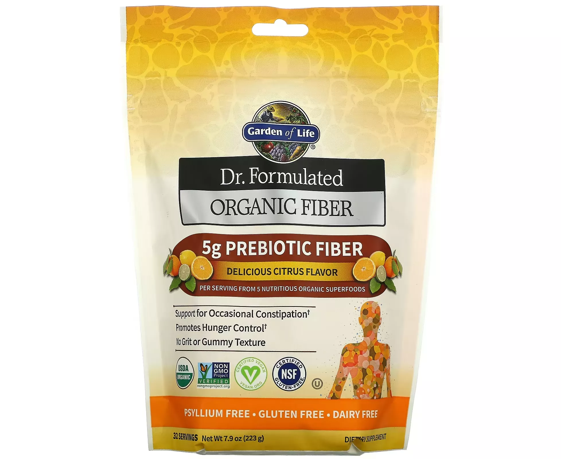 Prebiotic fiber from natural, organic, non-GMO whole foods helps curb appetite, promotes the growth of healthy probiotics in the digestive tract, supports healthy digestion, and eliminates occasional constipation.