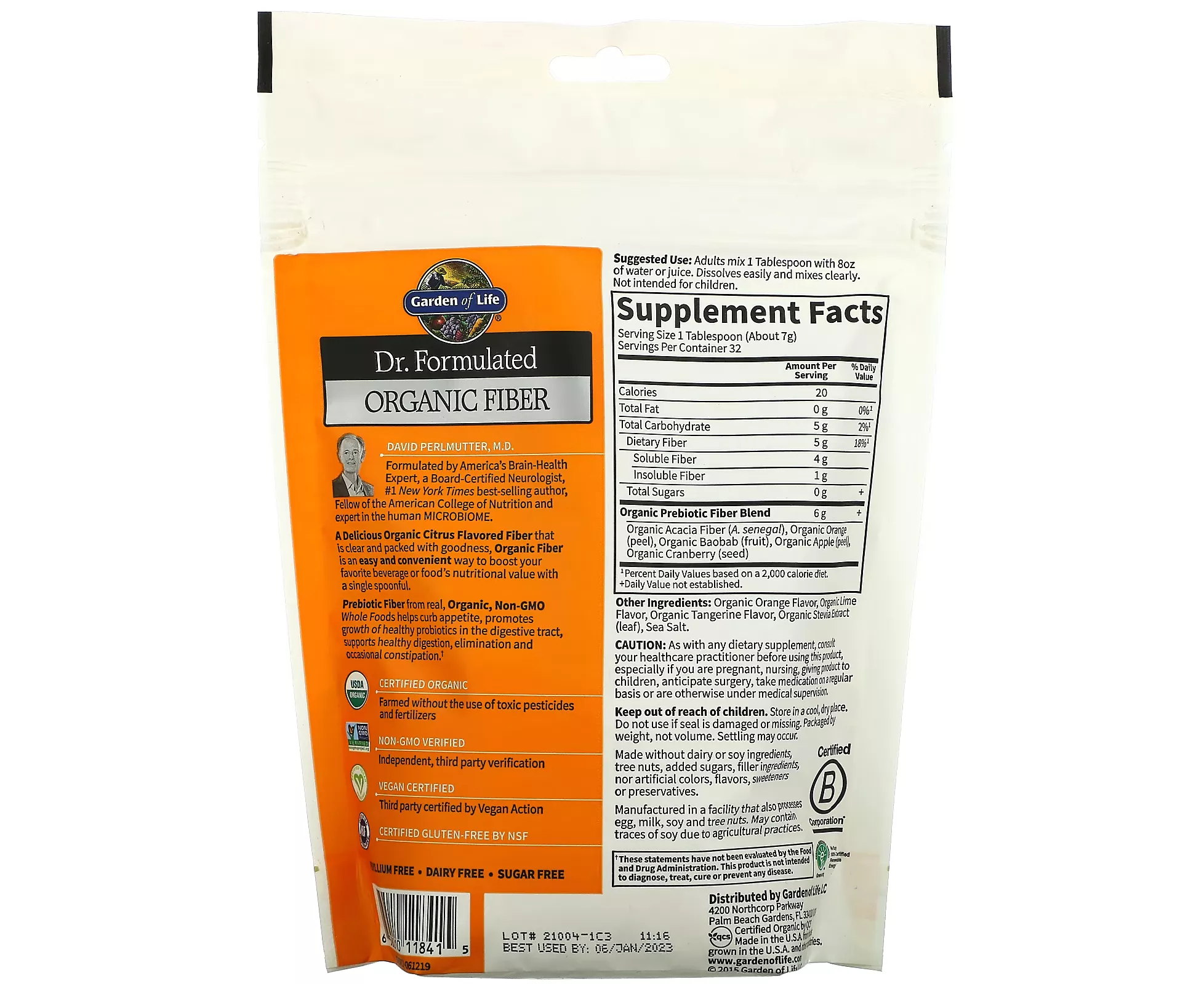 Delicious, pure citrus flavored and packed with goodness, Organic Fiber is an easy and convenient way to boost the nutritional value of your favorite beverage or just one spoonful.