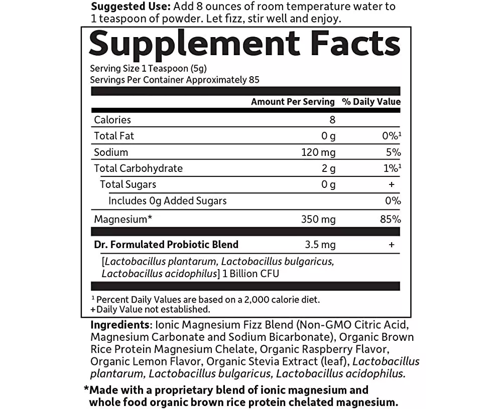 Provides Dr. Formulated delivers Whole Foods Magnesium Powder in a delicious tasting fizzy drink that helps relax and calm you, leading to a good night's sleep, while restoring optimal magnesium levels in your body.