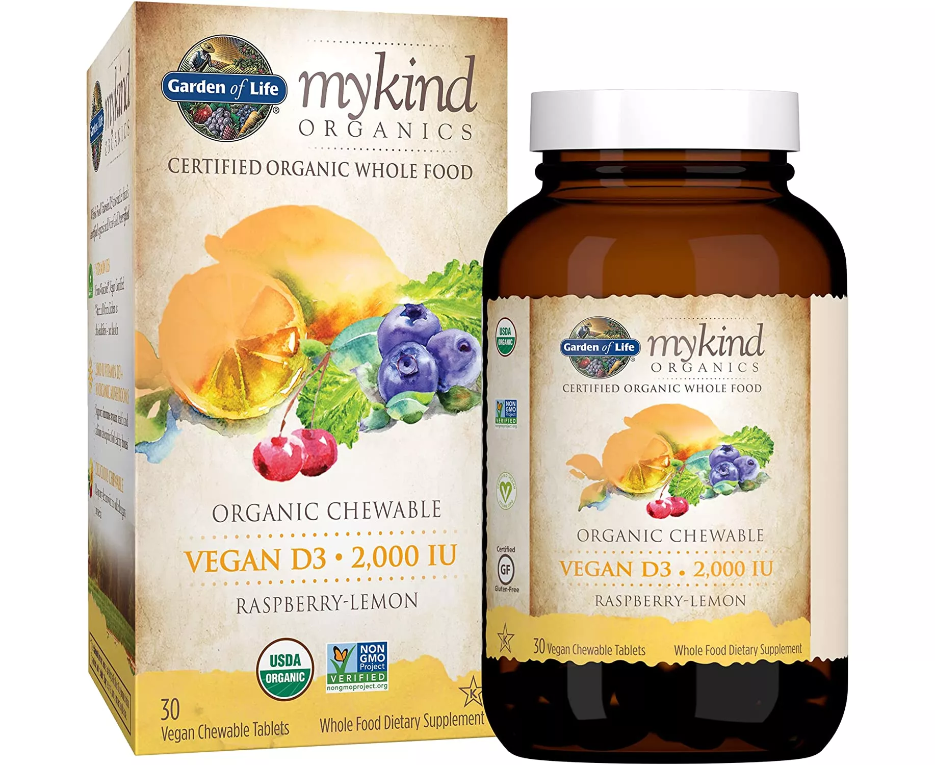 كبسولات فيتامين دي 3 النباتية بتركيز 2000 IU من جاردن أوف لايف ماي كايند أورجانيك (RA-LEM) 30