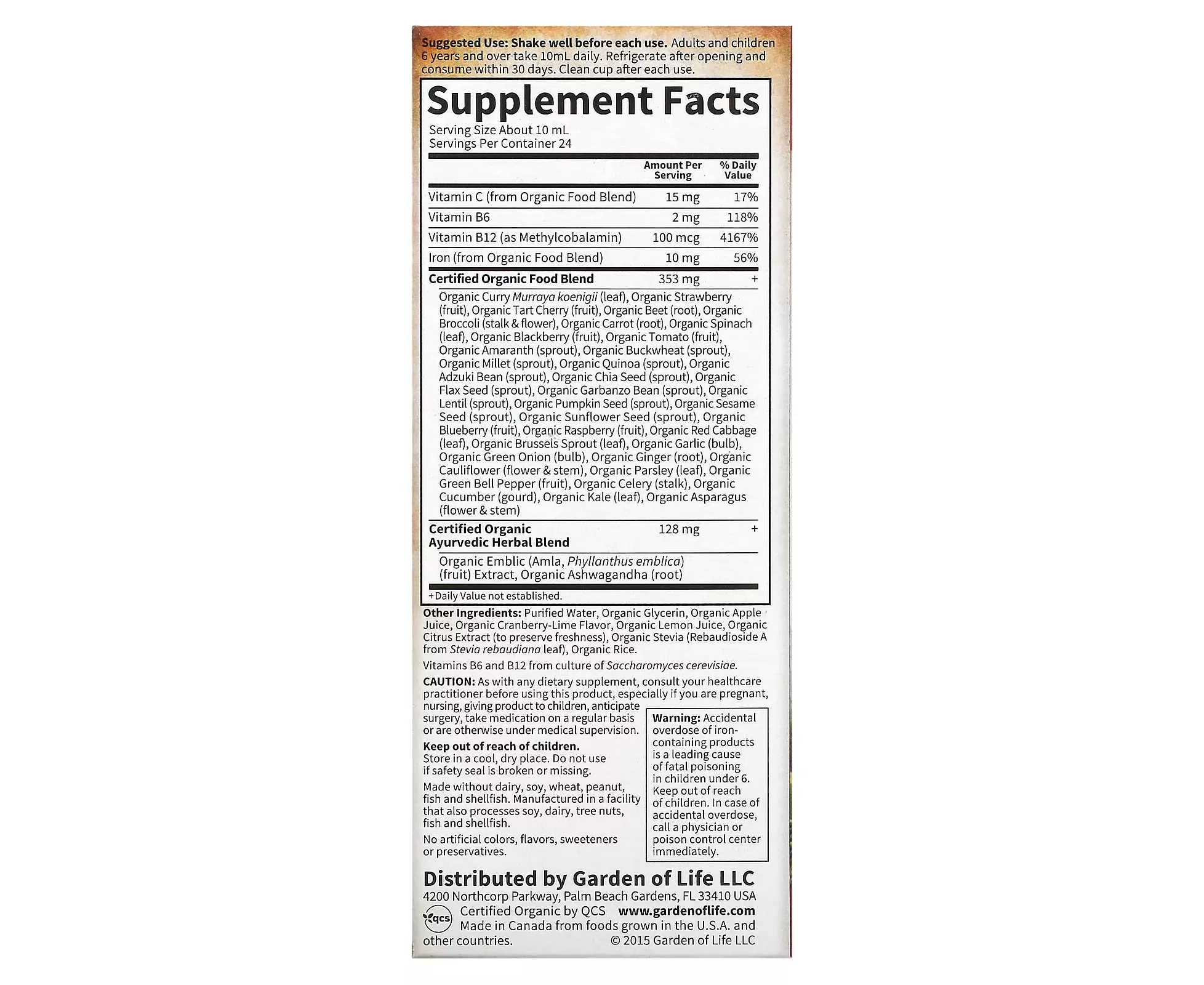 Liquid Iron from whole foods from natural plant sources, Certified Organic, Non-GMO