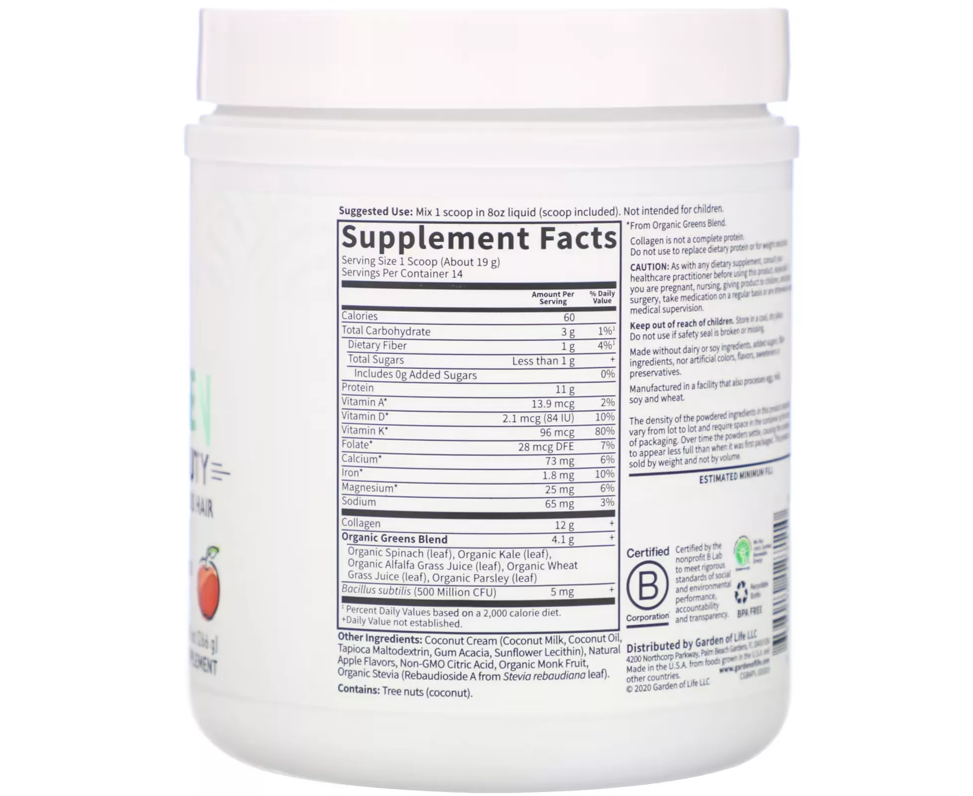 جرينز بيوتي الكولاجين التفاح -تغذية نباتية- من جاردن أوف لايف 9.38 أوقية (266 جرام)