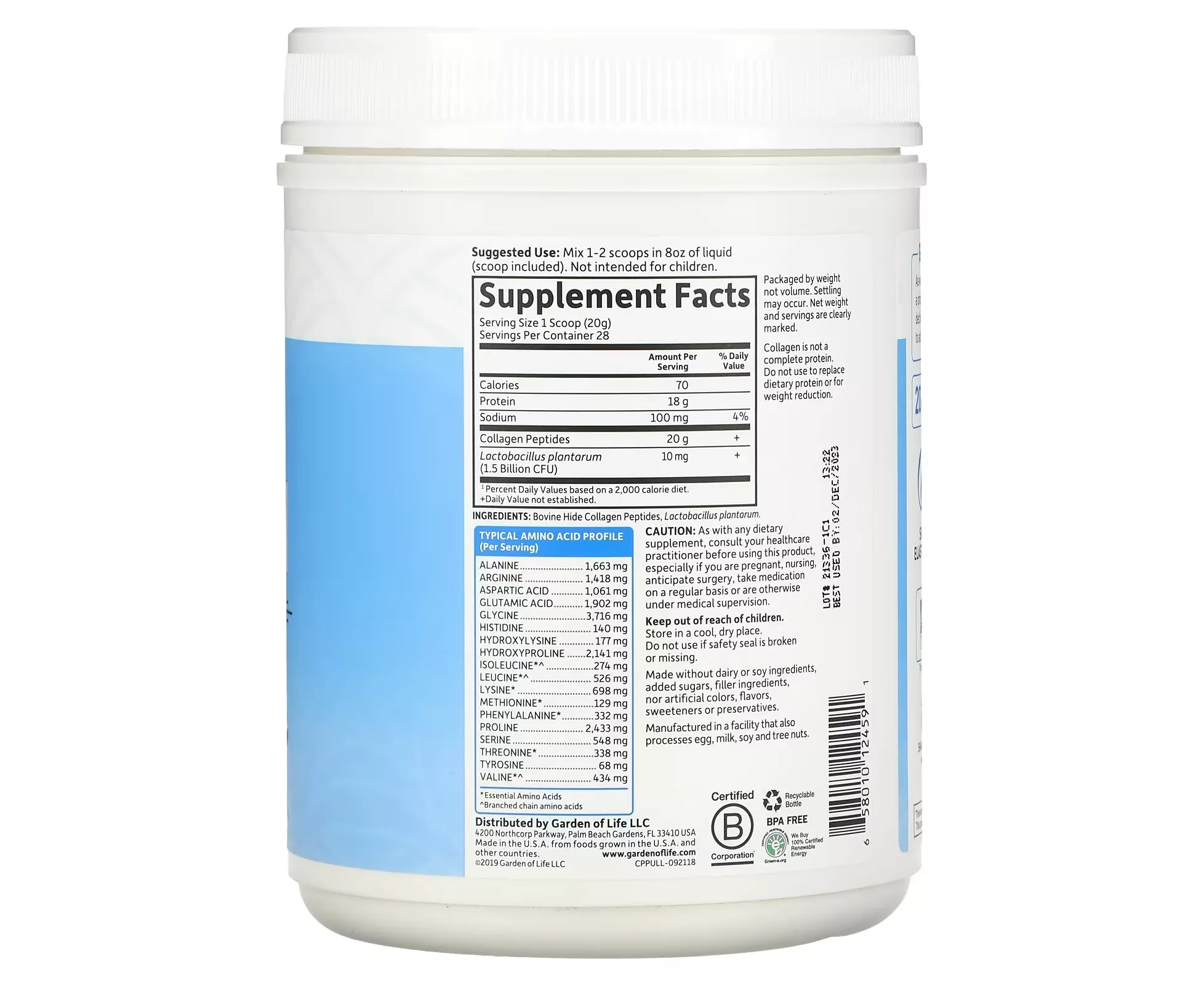 مسحوق بيبتيدات الكولاجين -تغذية نباتية- بدون نكهة من جاردن أوف لايف 19.75 أوقية (560 جرام)