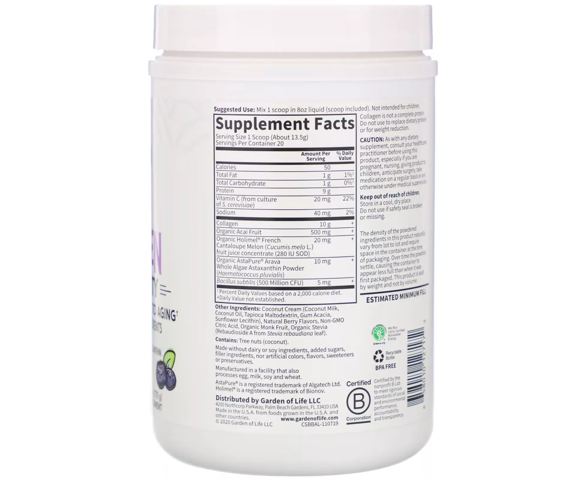 سوبر بيوتي الكولاجين أزرقالتوت الأكاي -تغذية نباتية- من جاردن أوف لايف 9.52 أوقية (270 جرام)