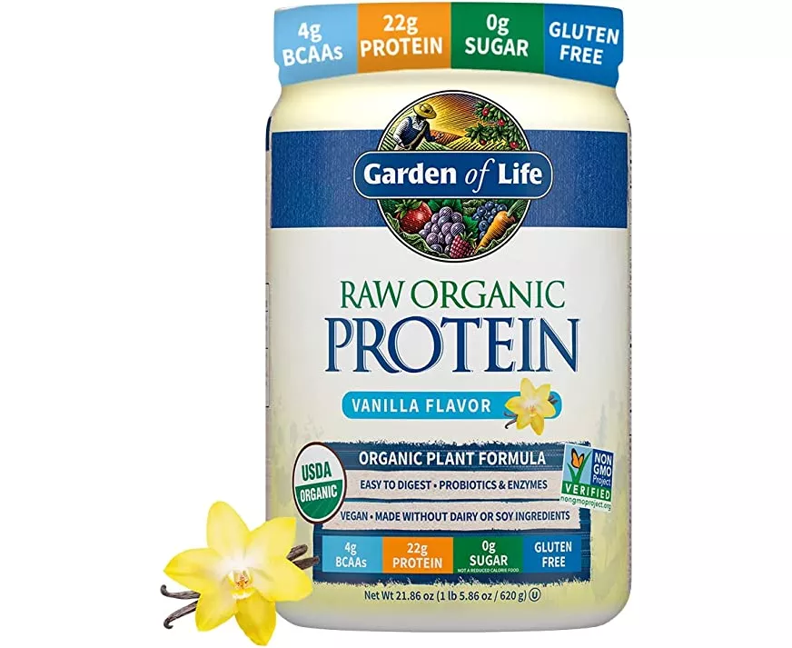 Raw Organic Protein is a Certified Organic, Non-GMO Project Verified Raw Vegan Protein powder made with 14 Raw sprouted proteins delivering 22 grams of protein that is dairy free with a complete profile of all the essential amino acids along with added whole food fat-soluble vitamins, probiotics and enzymes. Unleash the nutritive power of living grains and seeds with Garden of Life Raw Organic Protein—a certified organic, raw, vegan protein powder with a scrumptious taste. Featuring 22 Raw and organic sprouts, Raw Organic Protein is an excellent source of complete protein—providing 22 grams and 29% of the Daily Value—including all essential amino acids. Raw Organic Protein contains fat-soluble vitamins A, D, E and K and supports digestive health and function with live probiotics and protein-digesting enzymes.† Raw matters because heat can denature proteins, reducing their availability to your body. But Garden of Life’s Certified Organic plant proteins are different—always gently produced at low temperatures, without any added fillers or carriers, preserving their complete amino acid integrity and whole-food, Certified Organic, Non-GMO goodness. Raw Organic Protein—an excellent source of Certified USDA Organic, Non-GMO Verified, Informed-Choice Clean for Sport, Raw, vegan complete protein powder from 22 raw and organic sprouts.