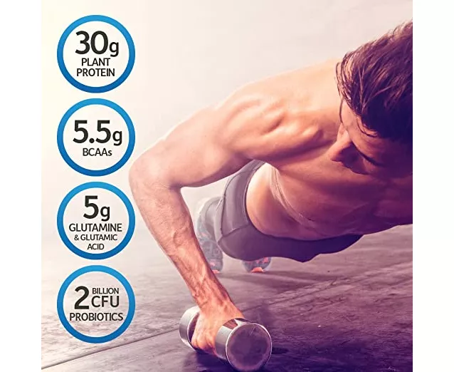Organic Plant-Based Protein is the cleanest protein available having quadruple, third-party certifications saying so. Not only is it Certified USDA Organic and Non-GMO Project Verified, Organic Plant-Based Protein takes it to the next level for sport by being NSF Certified for Sport and Informed-Choice for Sport Certified. This ensures there are no banned athletic substances—just whole clean nutrients. Organic Plant-Based Protein offers a blend of certified organic proteins from multiple sources, featuring U.S. grown organic peas, to give it a great smooth and creamy texture. Then we added other quality proteins such as organic garbanzo beans, organic navy beans, organic lentils and organic cranberry seed protein. One serving delivers 3Og of complete protein providing a full profile of all the essential amino acids, 5.5g BCAAs and 5g glutamine, which are important to help reduce recovery time after exercise. There are no synthetic branched chain amino acids—they all come from the organic ingredients. The Organic Muscle Recovery Blend includes Organic Tart Cherries, Organic Apples, Organic Turmeric, Organic Gogi berries and Organic Blueberries—these antioxidants are known to promote faster recovery. Because many sports participants compromise their immune systems due to intense training programs, we added 2 billion CFU of a specially-selected, clinically studied probiotic that has been shown to support immune health during intensive workouts.
