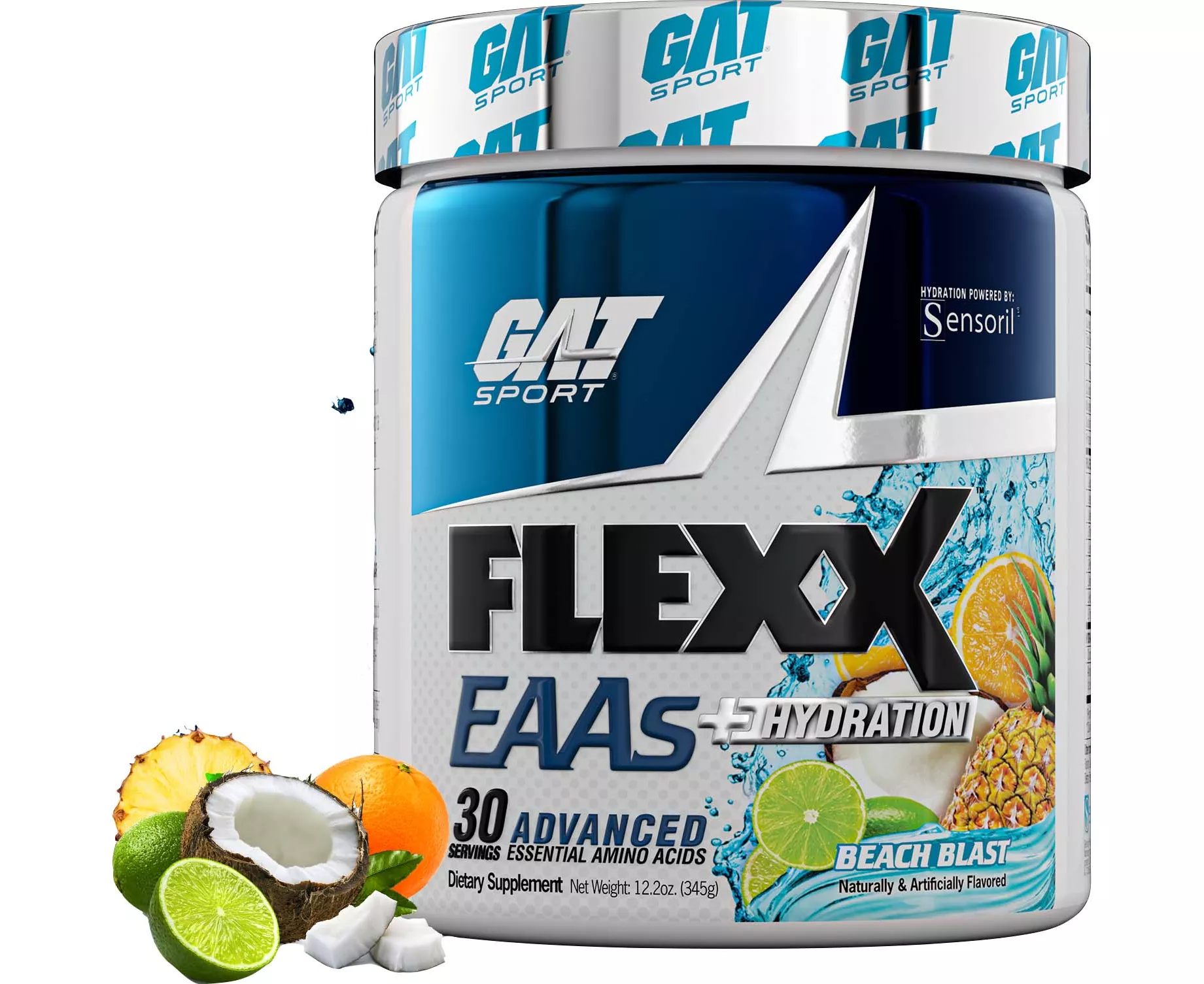 FLEXX EAAs deliver all 9 Essential Amino Acids (EAAs) for complete muscle protein synthesis. The result: Muscle preservation, energy, enhanced endurance, and recovery. This total amino acid prole features 7g of EAAs, with 5g in the clinically preferred 2:1:1 ratio. For stress mitigation and improved vitality, it includes 125mg of the adaptogenic herb Sensoril® Ashwagandha. Our amazing flavors provide hydration support that’s truly delicious, anytime: Pre, Intra, and Post-Workout. For the hard training athlete, FLEXX EAAs are the complete muscle and recovery solution.