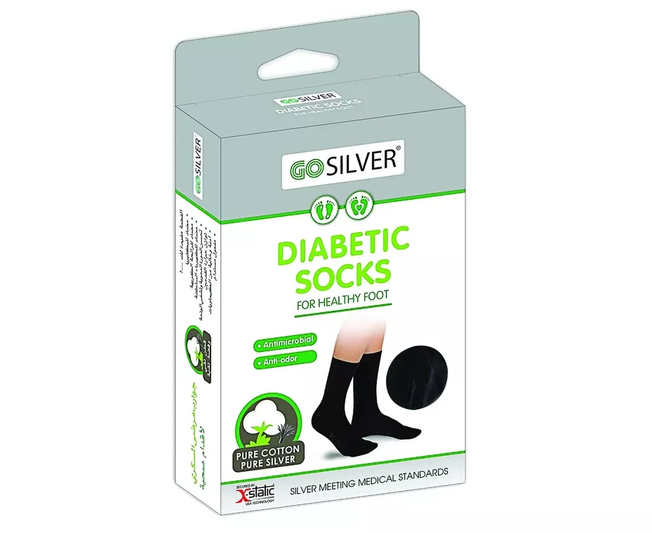 Go Silver Diabetic socks. Diabetes can be dangerous for your feet. Small cut can produce serious consequences. Diabetes may cause damage to nerve that kills the feeling in your feet; reduce the blood flow to the feet, Making the foot harder to heal an injury or resist infection or re-cover ulcer.