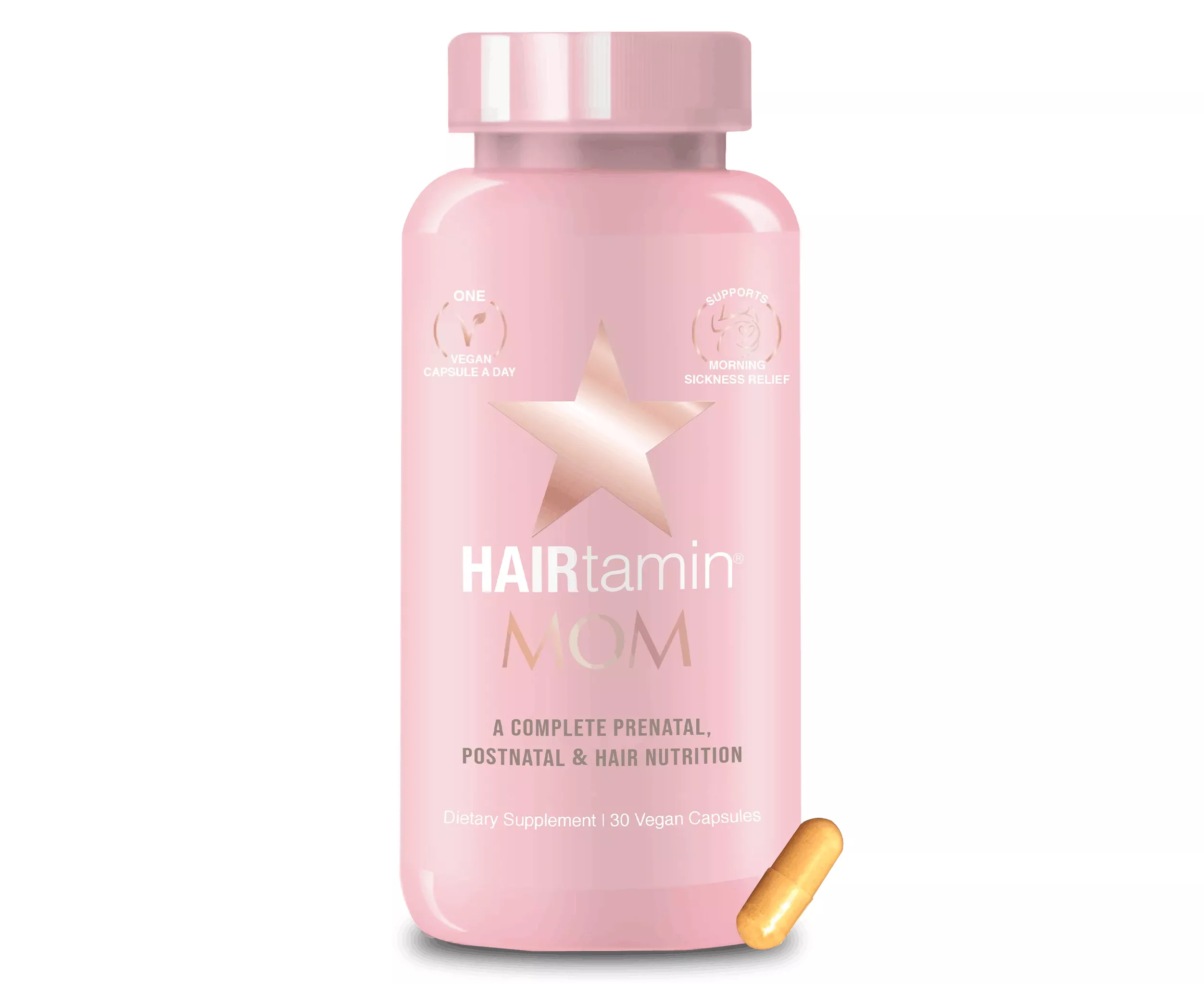Our bodies go through marveling changes throughout pregnancy. Oftentimes, our hair changes too with hair shedding or thinning being a common side effect that's why HAIRtamin® MOM was born. Your favorite hair vitamin has gone vegan and been formulated into a complete prenatal and postnatal to help nourish both you, your baby and yes, your hair!