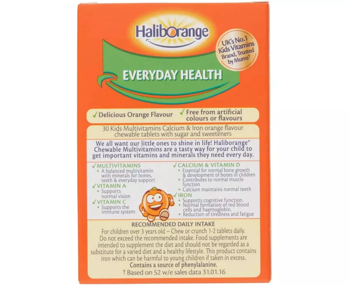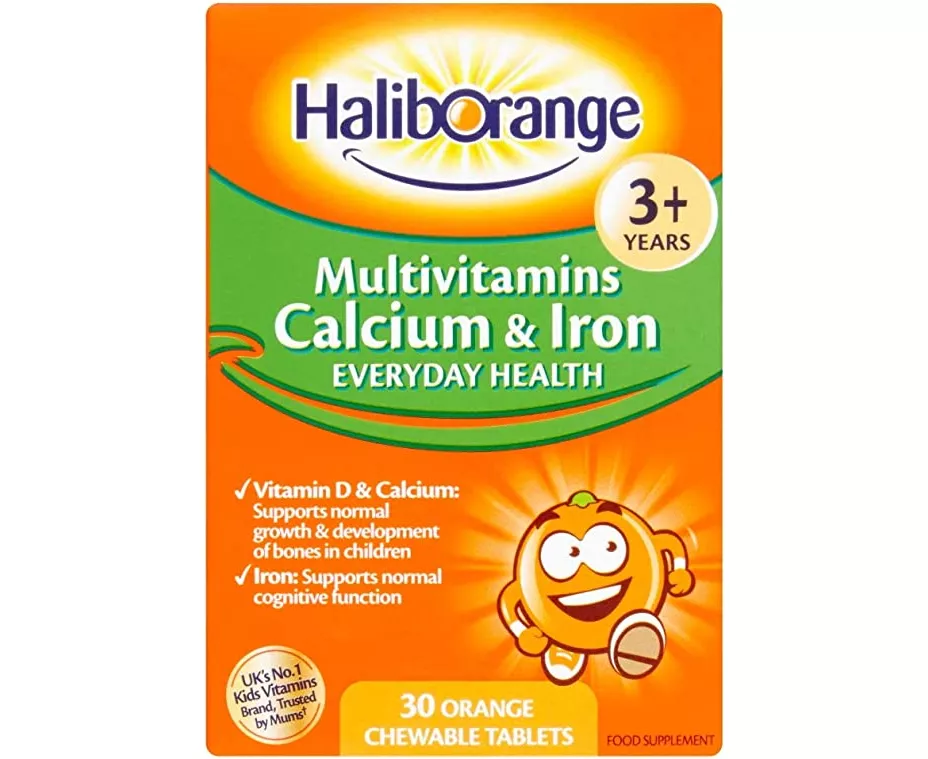 Haliborange kids multivitamin orange chewable tablet with  calcium, iron, vitamin a, c, d, e, vitamin b6 with niacin