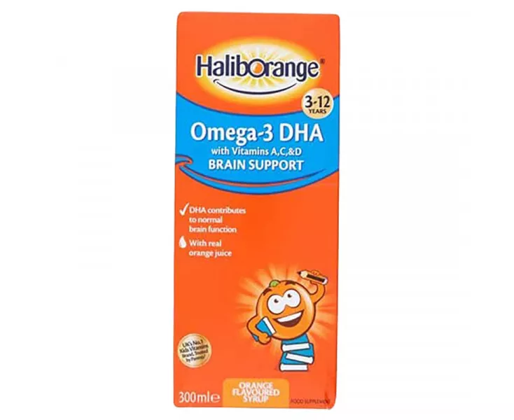 Orange flavored liquid food supplement with omega-3 plus vitamins. We all want our little ones to shine in life! Haliborange omega-3 orange syrup is a tasty way for your child to get the important omega-3 nutrients and vitamins they need every day.