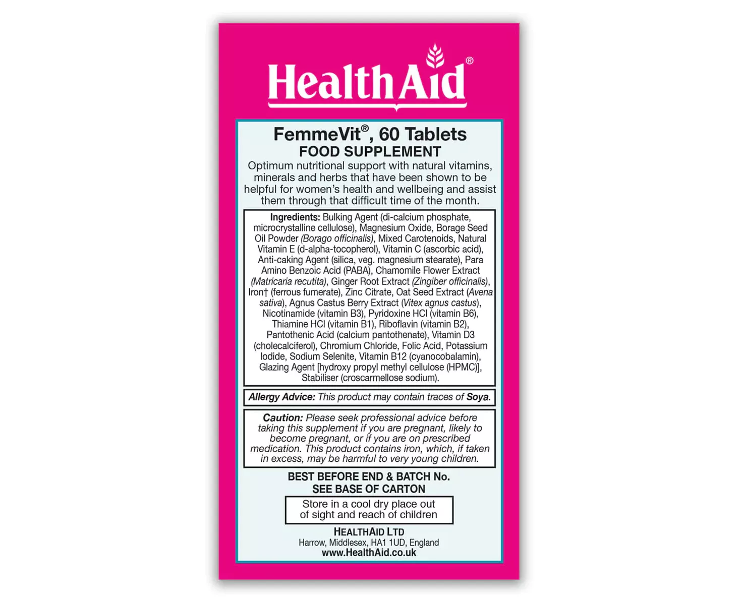 FemmeVit Tablets provide optimum nutritional support for women’s health and wellbeing and assist them through that difficult time of the month by contributing to the maintenance of healthy hormonal balance and the reduction of tiredness.