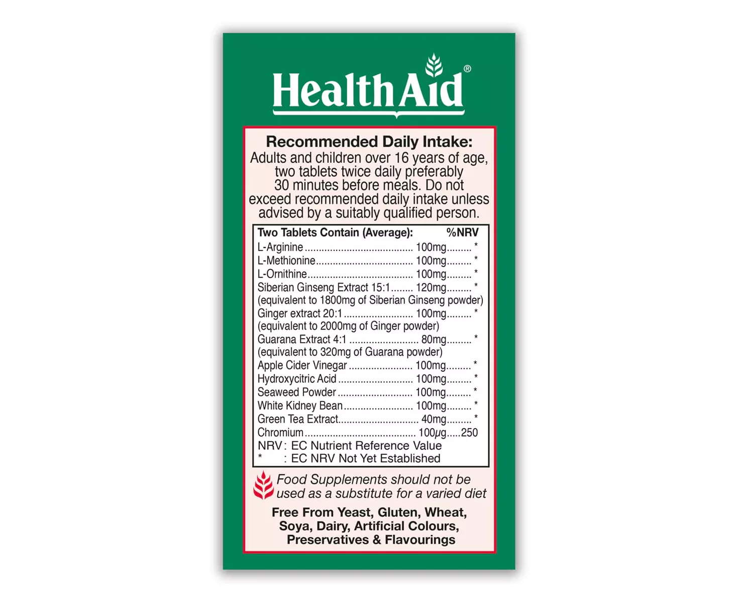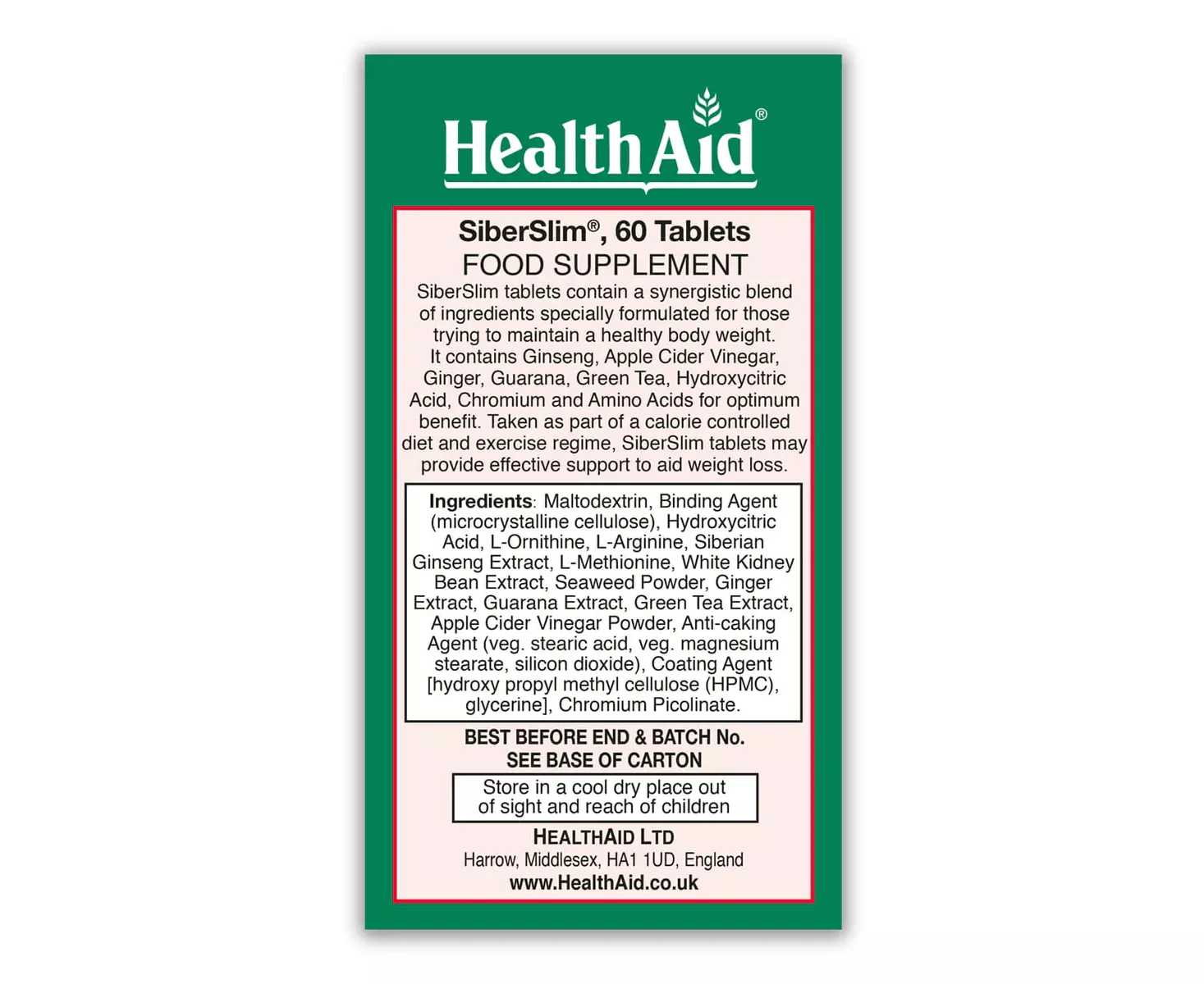 SiberSlim Tablets contain a synergistic blend of ingredients specially formulated for those trying to slim and maintain a healthy body weight. SliberSlim Tablets also contain Ginseng to contribute to the increase of energy levels; Apple Cider Vinegar for normalising the body’s acid-alkaline balance, detoxifying the liver and contributing to reduction of appetite; Ginger, Guarana & Green Tea to increase metabolism and burn excess body fat; Hydroxycitric acid to help inhibit fat storage, suppress appetite and boost metabolism; Chromium to contribute to normal blood glucose levels; Amino acids to assist with converting fat into lean muscle. Taken as part of a calorie controlled diet and exercise regime, SiberSlim Tablets may provide effective support to aid weight loss.