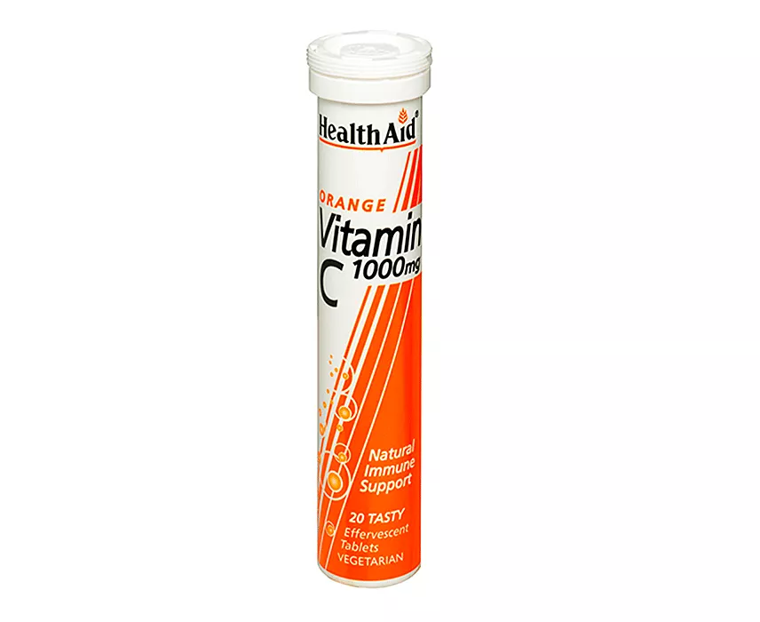 أقراص فيتامين سي فوارة بتركيز 1000 مللي جرام بنكهة البرتقال من هيلث آيد 20’s