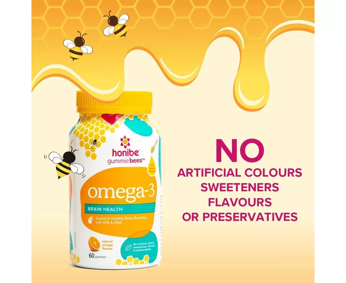 At honibe, we care about delivering affordable, real health benefits to all ages using 100% Canadian honey and the best ingredients backed by science and nature. Take a few hours before or after taking other medications. To maintain product freshness, keep bottle tightly closed. Do not use if seal is broken. Store in a cool dry place: <20°C