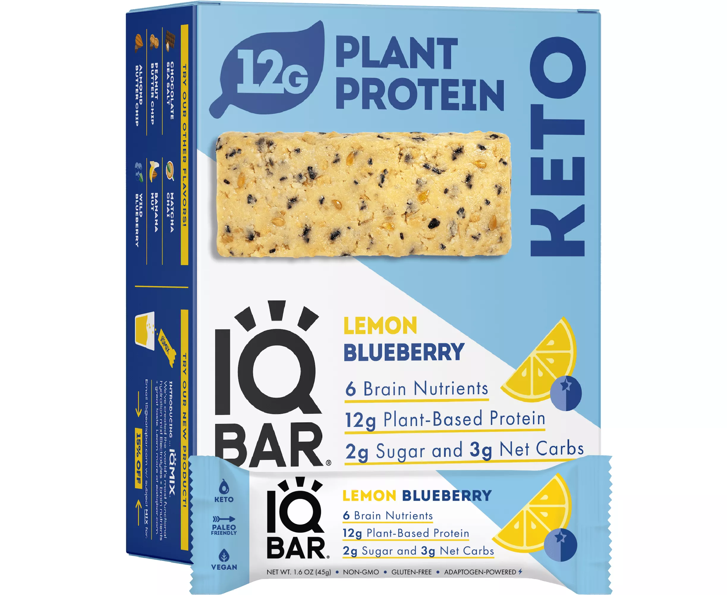 • 6 brain-boosting nutrients in every snack bar - IQ bar clean vegan protein bars are packed with lion’s mane, MCTs, omega 3, flavonoids, vitamin e & choline. We use a science-backed formulation to provide you with healthy & tasty nutrition bars for your active & busy lifestyle