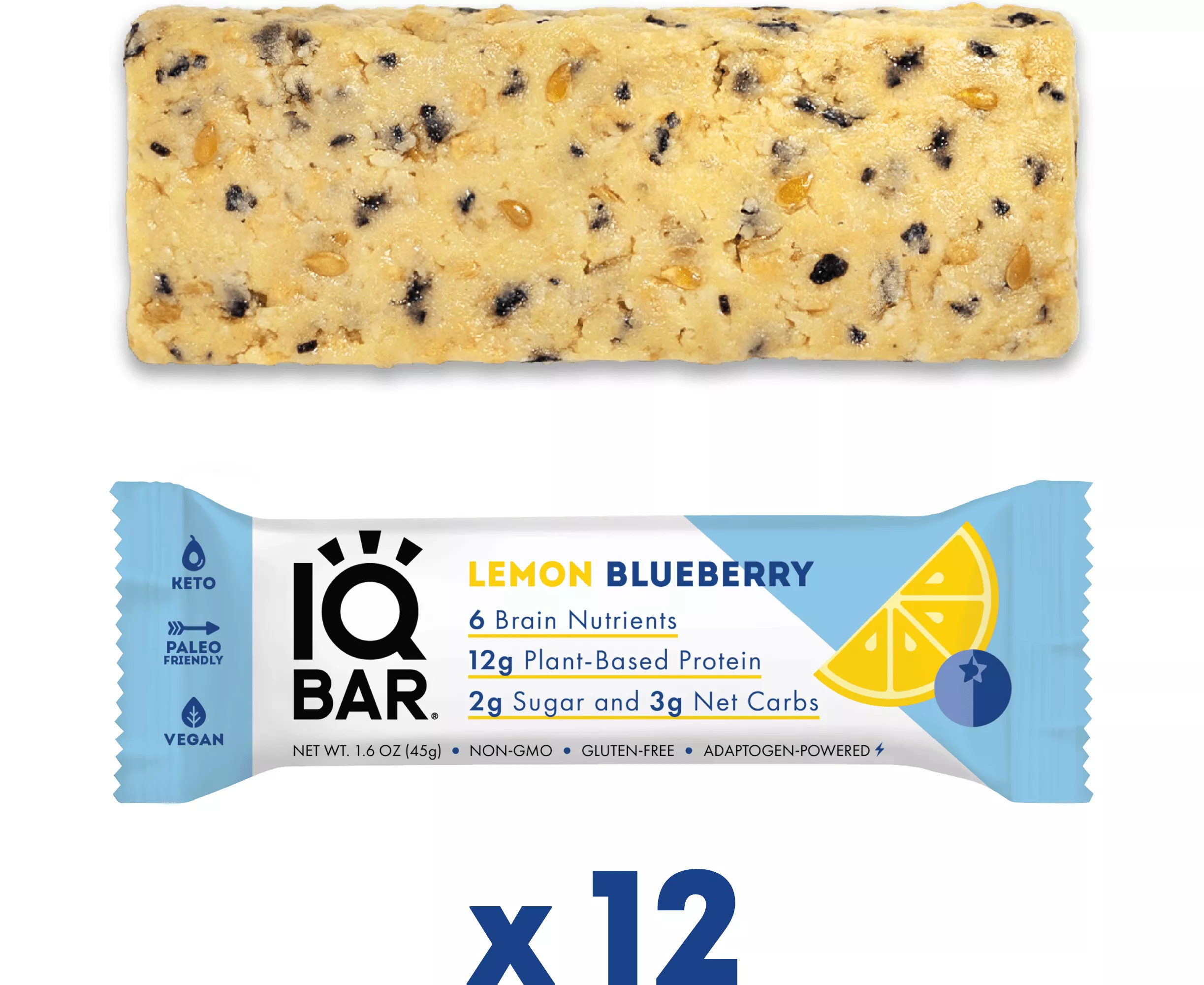 بار البروتين بنكهة الليمون التوت البري من آي كيو بار 12 x 45g