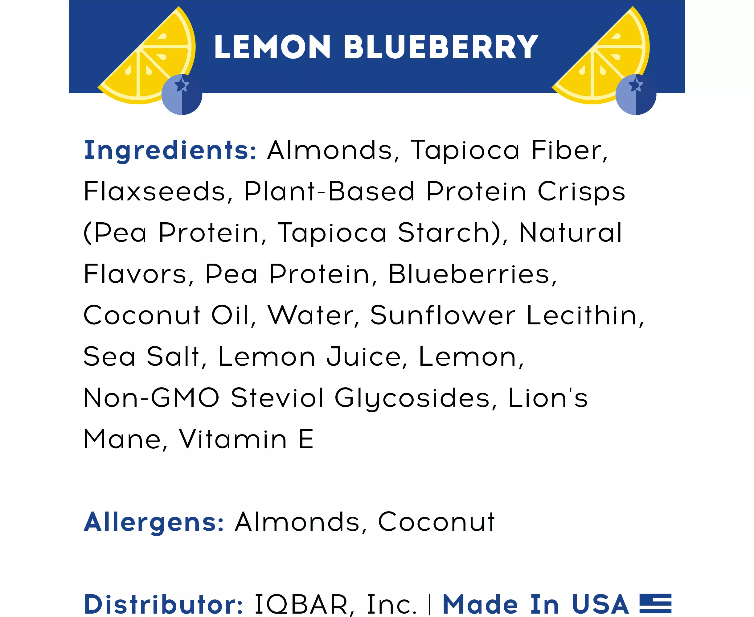 • Our Lemon Blueberry bar tastes like a refreshing, puckery, full-bodied lemon dessert, but spares you the crash you would expect from a typical treat. We incorporate real, whole lemons into this bar to give you a true-to-nature eating experience.