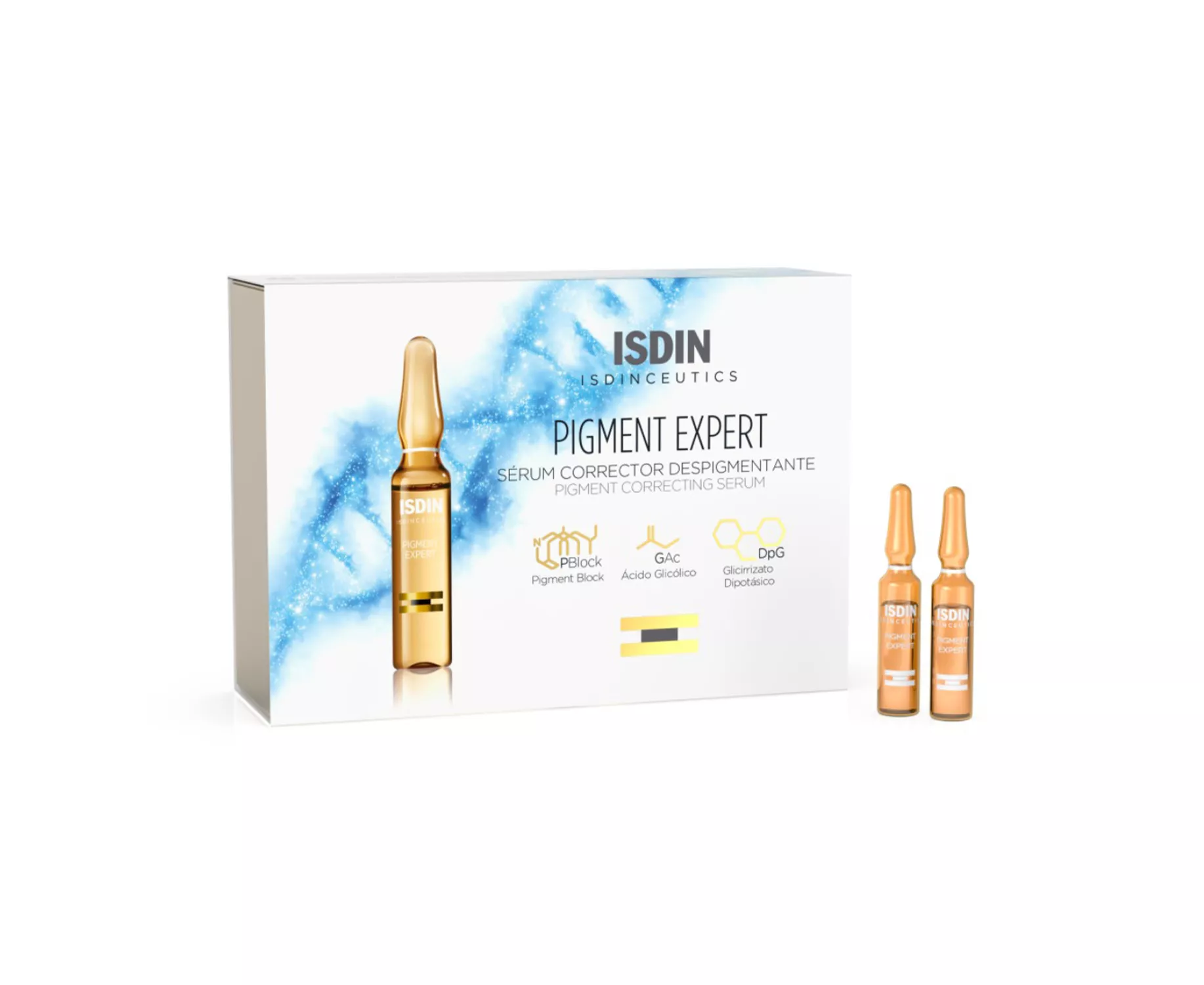 Isdin Ceutics Expert Pigment Correcting whitening facial serum 30x2ml is a targeted serum designed to brighten and unify skin tone. Using a gentle but effective formula, containing skin smoothing and pigment-correcting ingredients, it helps to decrease the appearance of dark spots for brighter, more luminous skin. Helps to achieve a more even, unified tone through a combination of pigment-correcting ingredients. Fights the visible signs of photoaging by helping to minimize the appearance of discoloration and imperfections. Exfoliates, hydrates, and smoothes the skin, helping to restore luminosity and flexibility for a youthful glow.