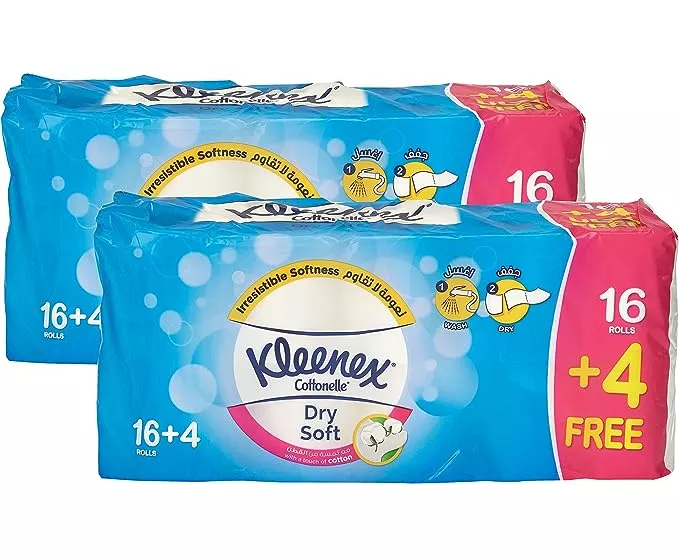 Kleenex Toilet Paper Dry Soft, 20 Tissue Rolls, Pack of 2