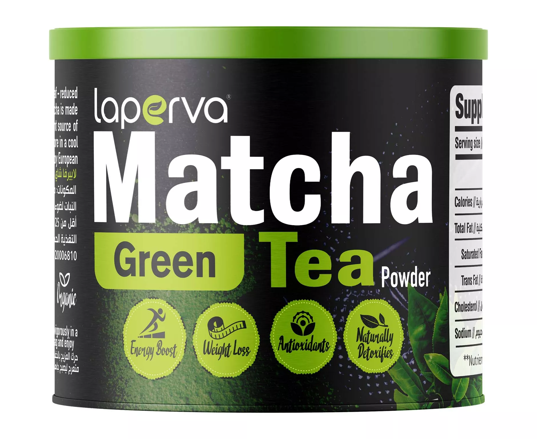 Organic Japanese Laperva Matcha Green Tea is a Japanese product as Japan is the home of the original matcha tea, ensuring high purity and quality, it is one of the best Japanese green tea in the world due to its amazing nutritional and health benefits and matcha. It contains nutrients from the entire tea leaf, resulting in more theanine, chlorophyll, and antioxidants compared to regular green tea. It also contains caffeine and theanine, which improve many brain functions.