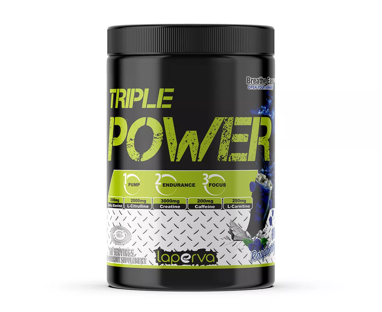 The Laperva Triple Power pre-workout formula includes the best ingredients that increase the activity and vitality of the body. According to scientific research, the Laperva Triple Power pre-workout formula improves physical performance and provides energy throughout the training period as well as reduces fatigue thanks to its components that enhance the body's energy and performance for a period Long lasting, unlike other products, whose effect lasts for several minutes.