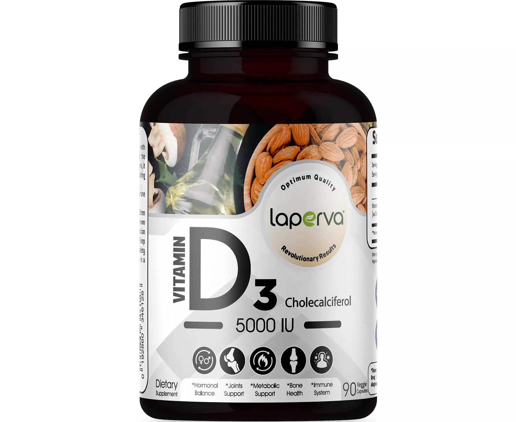 Laperva Vitamin D3 5000 IU Vegetarian is a capsule made from plant-derived materials that are easier to absorb compared to regular capsules to increase the level of vitamin D in the body, strengthen the bones, promote their health, and reduce the risk of many chronic diseases, (diabetes, heart disease). ), some types of cancer, strengthen the immune system and its functions in protecting the body from various diseases and activating and regulating the growth of healthy cells.