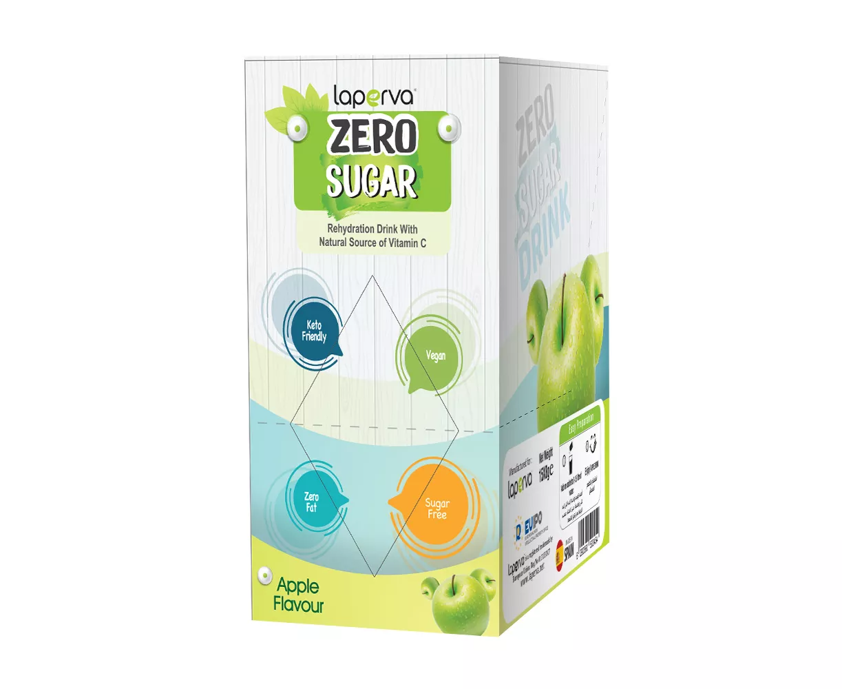 Laperva Drink Zero Sugar Contains Many Dried Fruits, Vitamin C, and a Natural Coloring Extracted From Beetroot. One Package Contains 15 Servings, 8 Grams Each, and One Serving Contains 120 Mg Vitamin C, 8 Grams of Sodium, and 2.6 Grams of Carbohydrates.