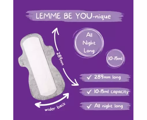 Lemme Be Sanitary Night Pads 100% Cotton Certified Biodegradable - (Box Of 7)
