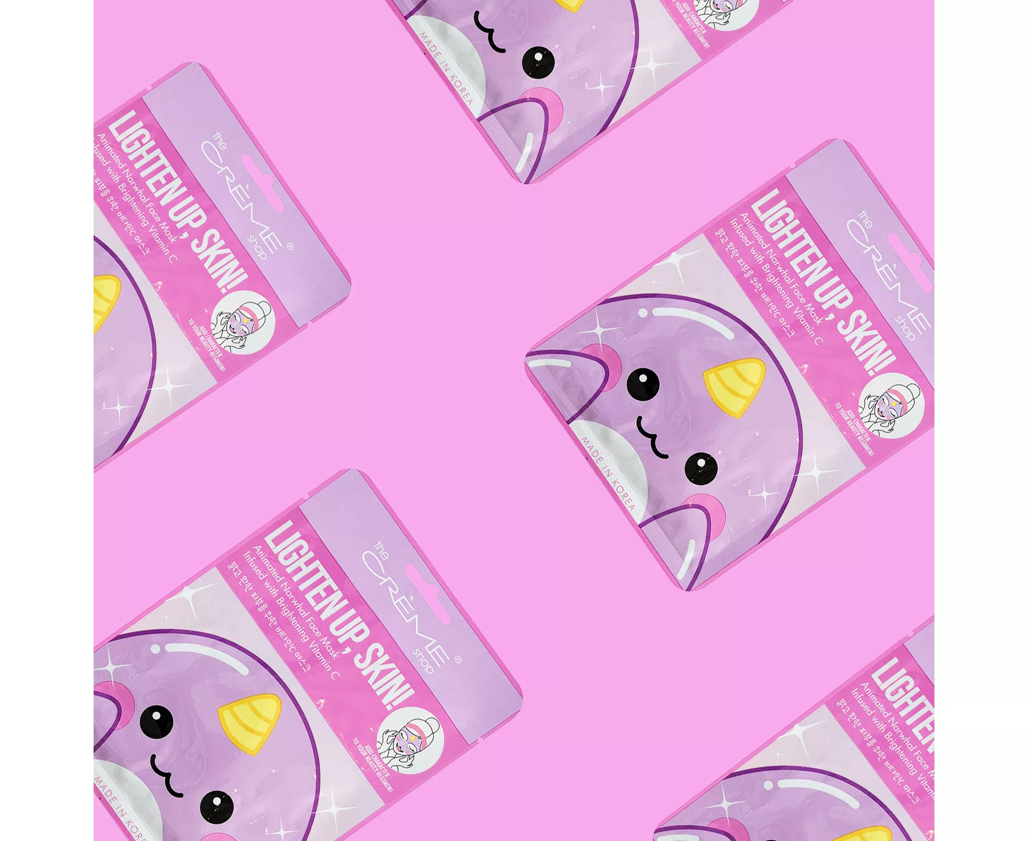 Lighten Up, Skin! Narwhal Face Mask Animated narwhal Face Mask Infused with Brightening Vitamin C Animate your skin with The Crème Shop's Animal Masks! Get rid of gnarly blemishes with the help from this friendly narwhal! This vitamin C-rich mask protects the skin from harmful UV rays and heals existing spots, leaving dark areas and scars lighter and overall tone brighter.